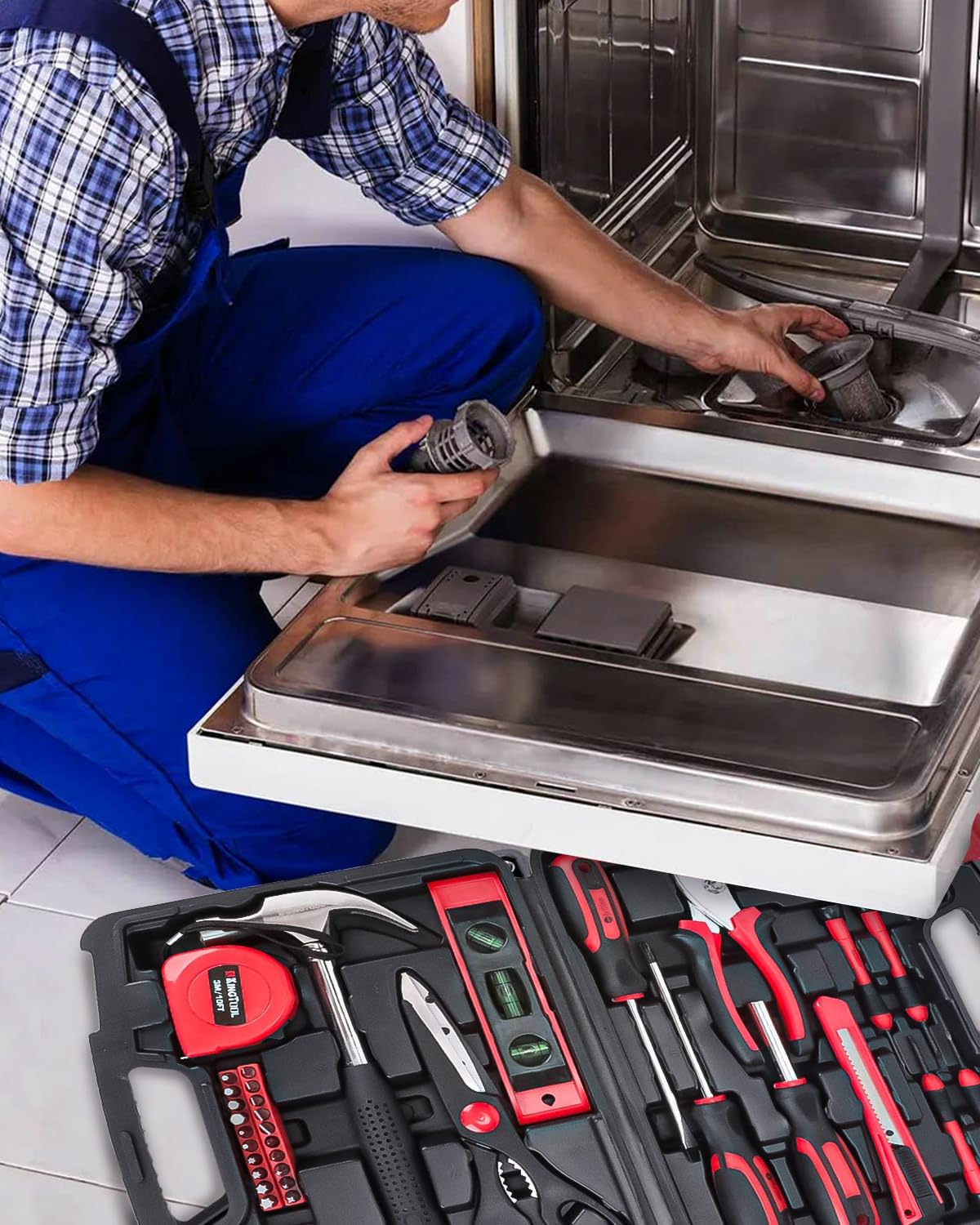 [Toolbox Included] - Assortment of necessary tools are in one tool chest, durable plastic case with internal molded compartments to keep each component protected and easily accessible. All tools meet or exceed ANSI standard.