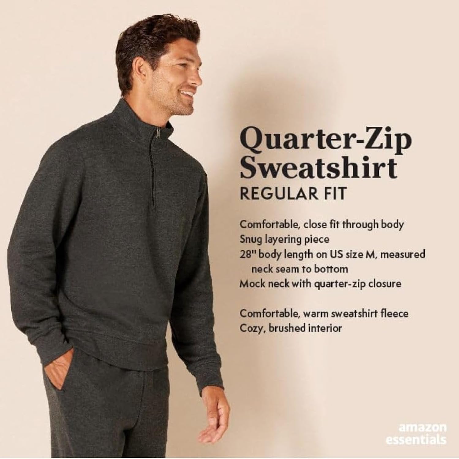 EVERYDAY CASUAL STYLING: This pullover quarter-zip sweatshirt is a go-to for an easy, casual look. Match back with Amazon Essentials Men's fleece joggers for a head-to-toe cozy look or style with jeans for everyday on-the-go.