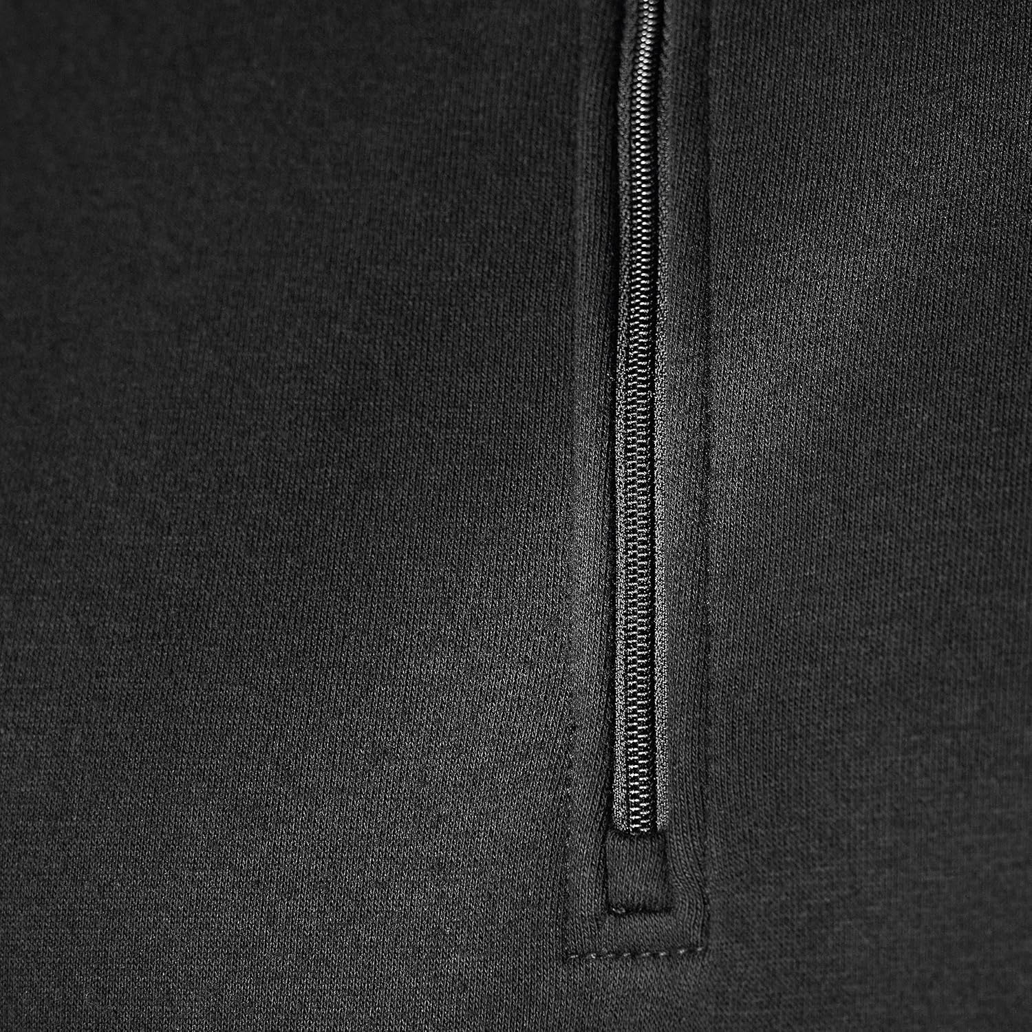 DETAILS: Features a quarter-zip at front, mock neck collar, and rib trim at cuffs and hem.
