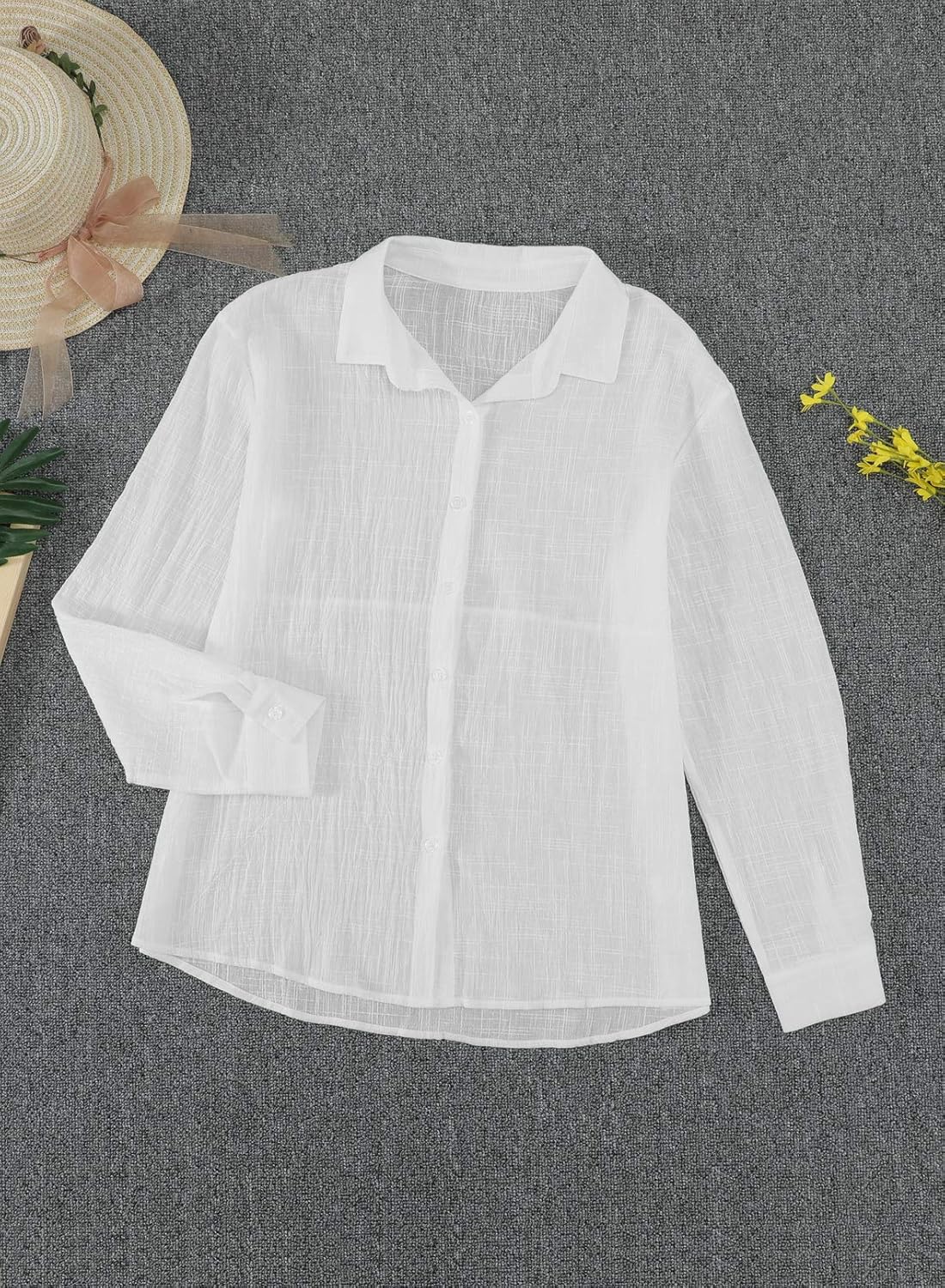 Features: Long Sleeve, Collared V Neck, Roll-up Sleeves, Button Down, Solid Color Design