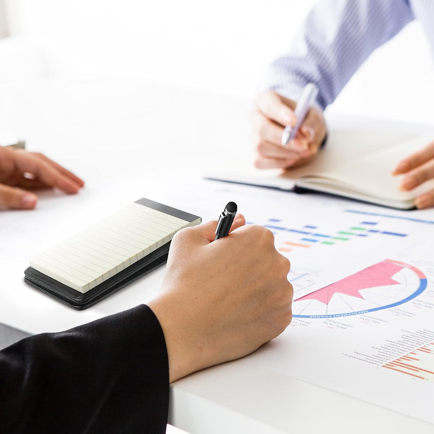 Package contain: you will get a mini pocket notepad holder with 50 lined sheets, a metal pen and 8 memo book refills with 30 lined paper per pad; They are ruled pages, can comfortably, good for business, conference, meeting, office and travel; Can carry and use it anywhere