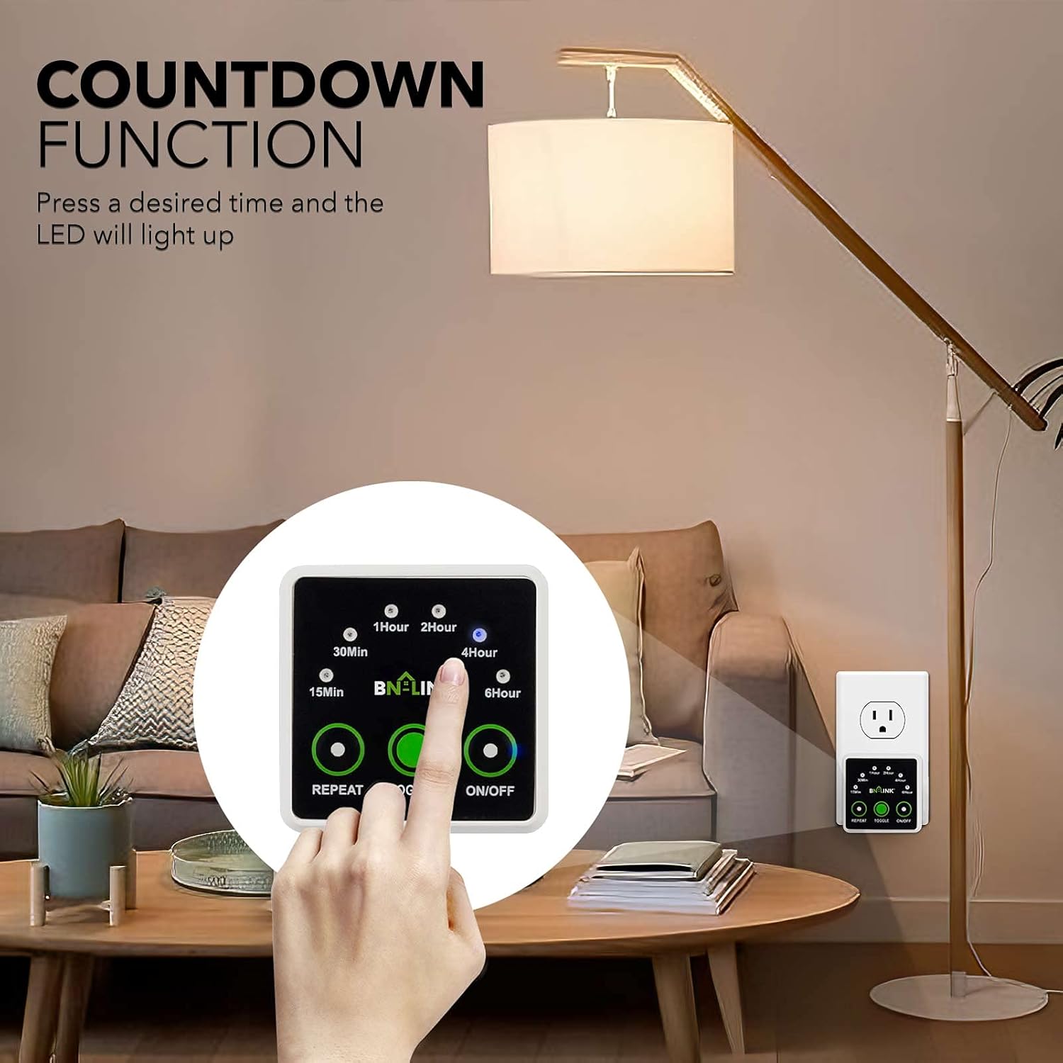 BN-LINK Smart Digital Countdown Timer, Repeat Cycle Timer with 3-Prong Grounded Outlet for Lamps, Light and Home Appliance...