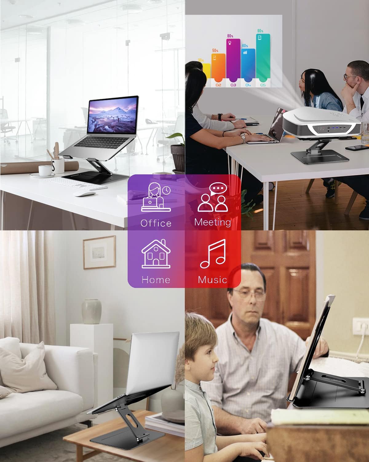 【Sturdy & Stable】Made of whole premium aluminum alloy laptop stand designed as modern feel Z-type, provides high quality stable to the stand. The computer stand is strong sturdy supports up to 20 lbs on top.Non-slip rubber on the laptop holder ensure your laptop hold in place and protective hooks prevent from sliding around. Moden feel and all protect your laptop.