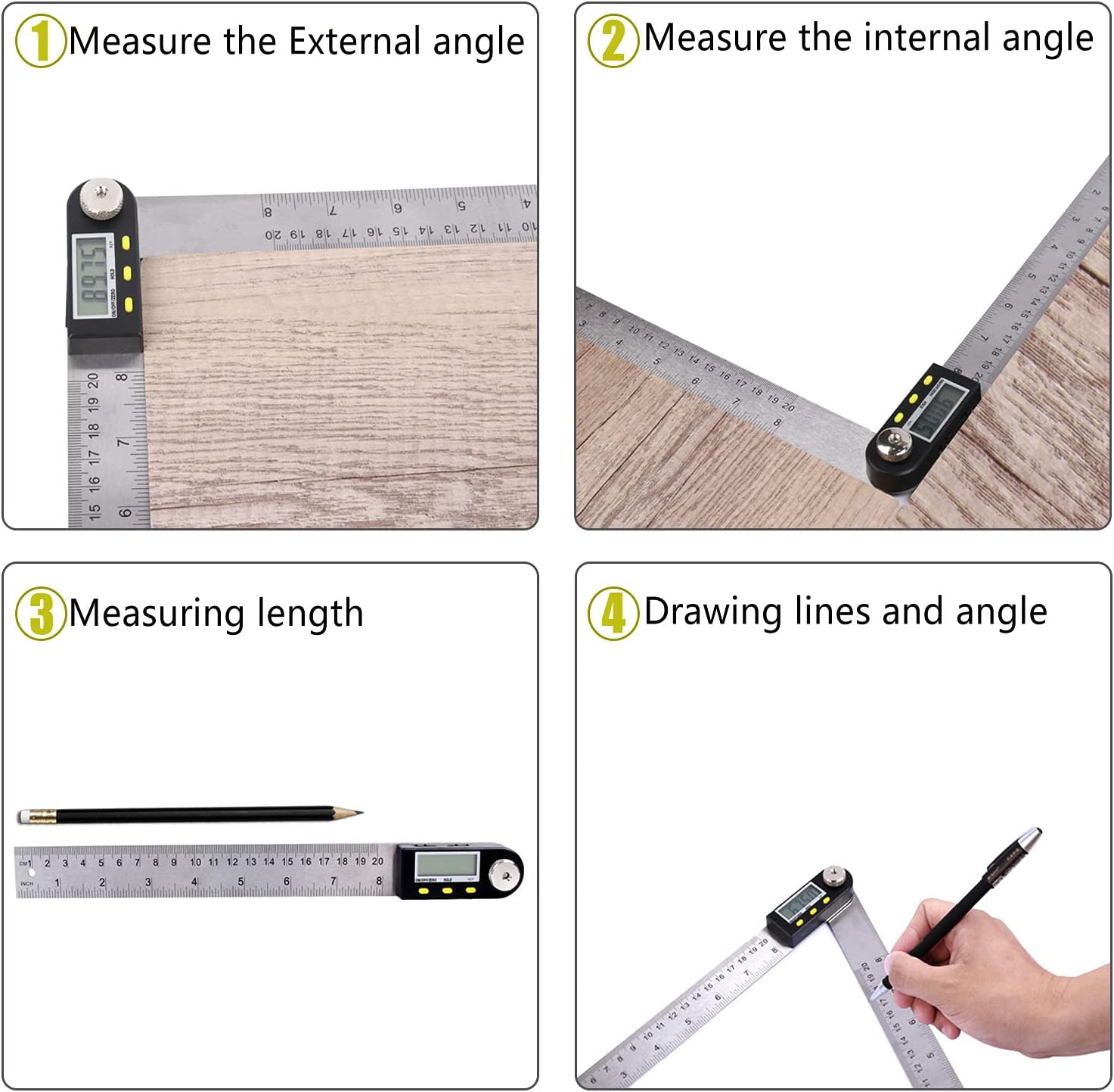 2-in-1: Digital Stainless Steel Ruler and Angle Finder - Easy Measurement of Inside and Outside Angles