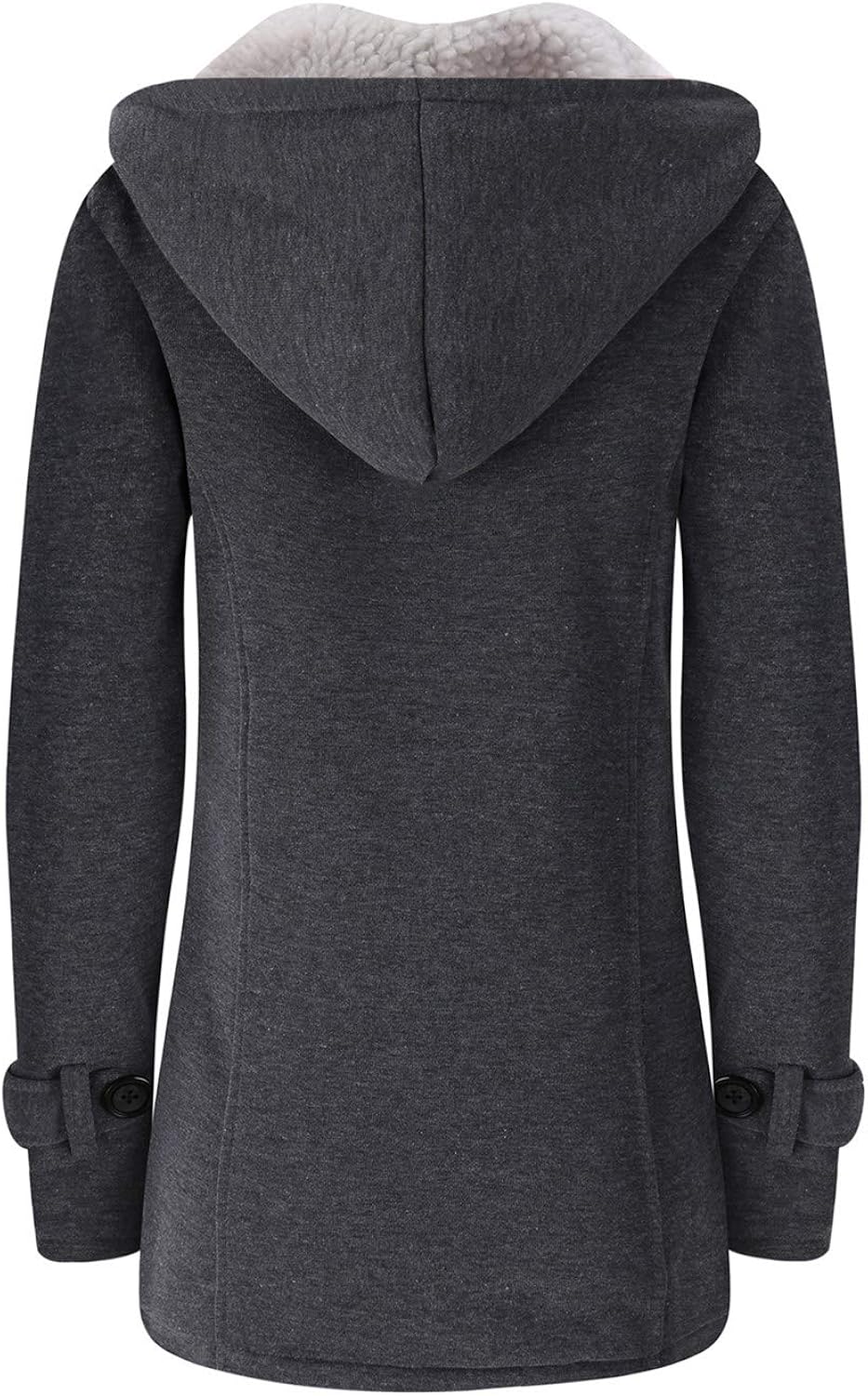 Women's winter leisure hooded horn buckle wool pea coat jacket can keep you warm and comfortable in the cold winter, suitable for all occasions