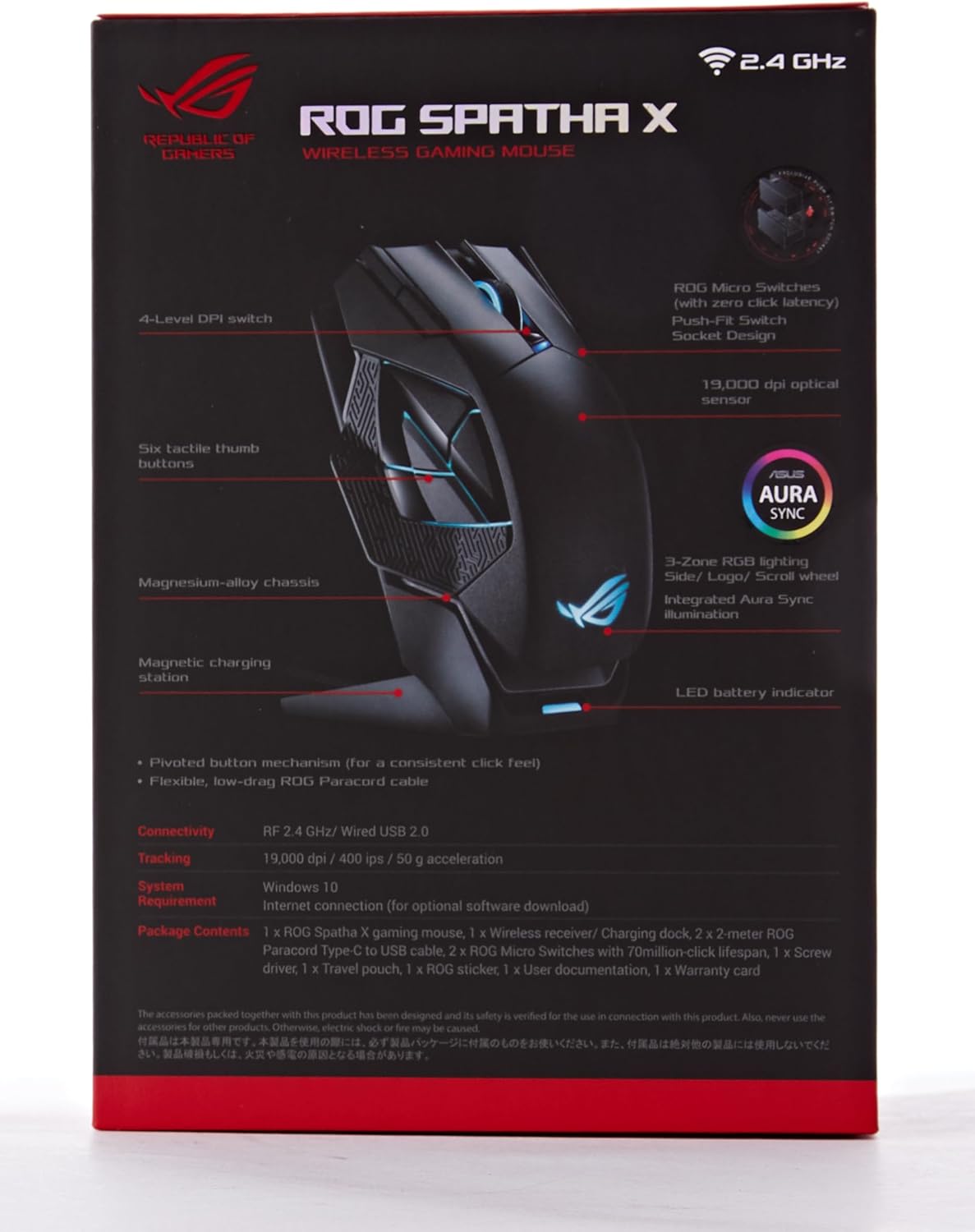 ASUS ROG Spatha X Wireless Gaming Mouse (Magnetic Charging Stand, 12 Programmable Buttons, 19,000 DPI, Push-fit Hot Swap S...