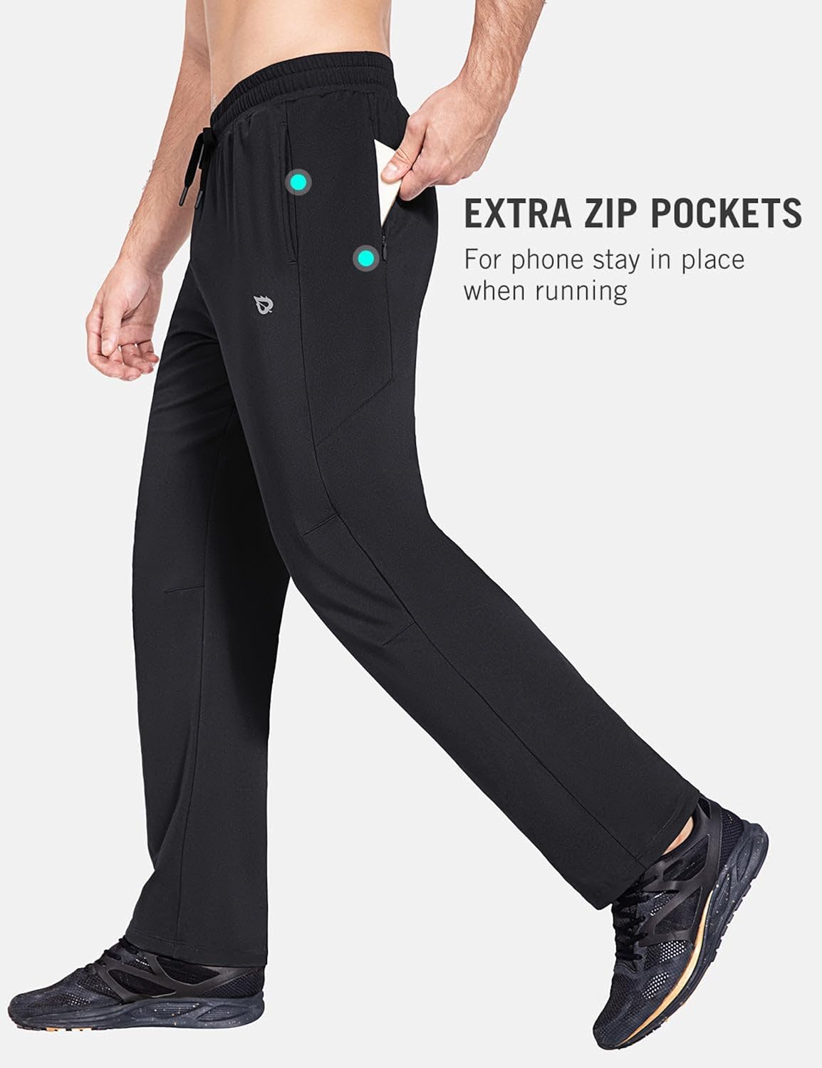 baleaf Men's Fleece Lined Water Resistant Pants Winter Thermal Sweatpants with Zipper Pockets Warm Open Bottom