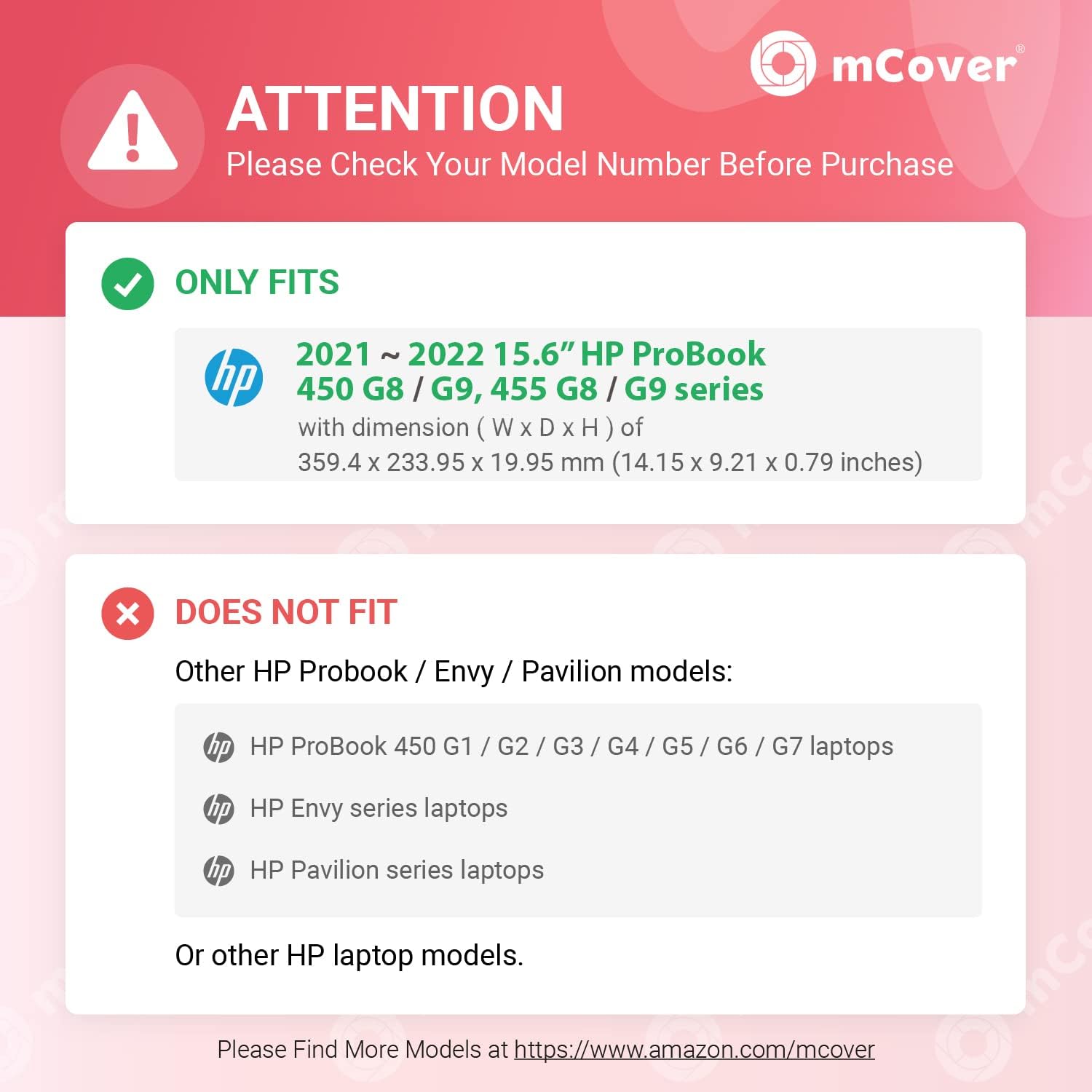 Made of high-quality translucent polycarbonate material which is shatter-proof and will protect your 2021~2022 15.6" HP ProBook 450 G8 / G9 and 455 G8 / G9 series Notebook PC all around