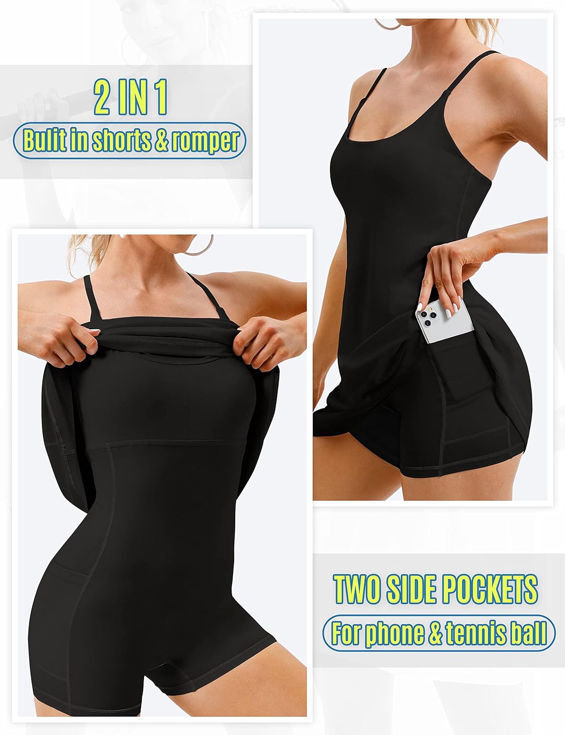 [Stay Safe In 2 In 1 Tennis Dress] Workout dress with built-in shorts & removable bra for a total coverage and ease of movement, you can reach to return every serve without anything holding you back. Plus, two side pockets are added in undershorts are great for keeping your essentials within reach.