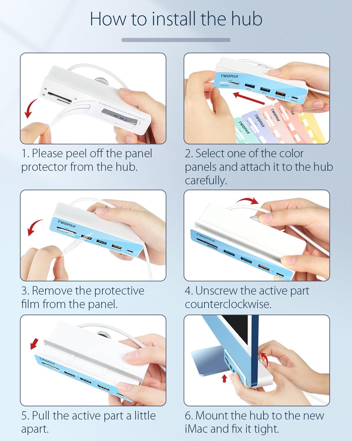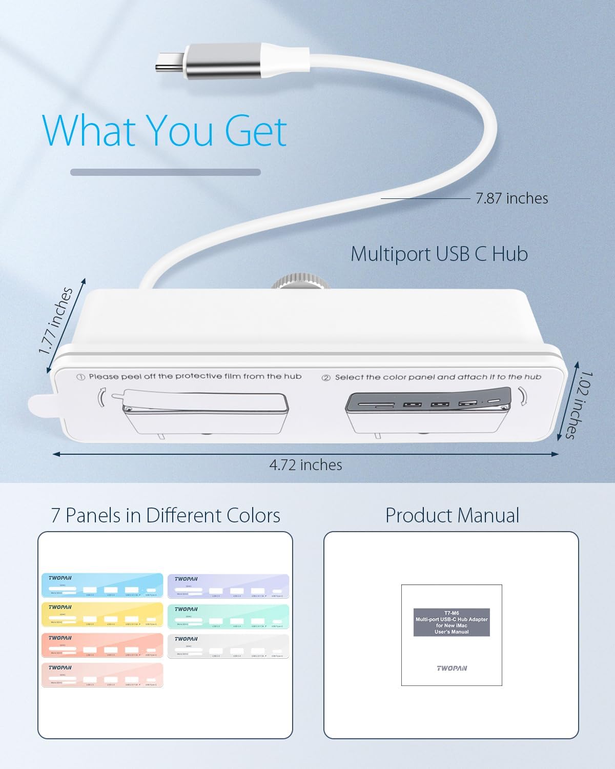 7 Color Panels: Express your creativity with our hub's multi-colored panels. Designed to match your iMac's colors, choose from Gray, Pink, Blue, Green, Orange or Yellow and create a personalized setup that reflects your style