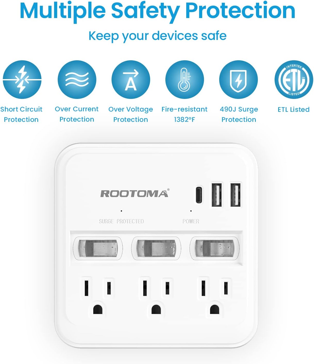 【Reliable Safety Guaranteed】- This usb plugs for wall outlet is certified by ETL and FCC Listed, comes with built-in surge protection, It is safe for you to use. ROOTOMA's friendly and reliable customer service will respond to you within 24 hours. You can purchase with confidence, with our 12-month replacement warranty, or 30-day money-back guarantee.