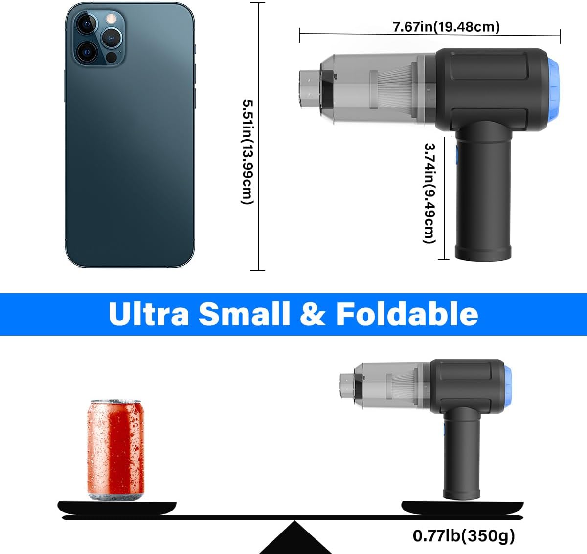Innovative 3 in 1 Multifunction:It is not only a mini vacuum cleaner, but also an air duster and air blower.One end of the machine is connected to the nozzle for vacuuming, and connected to the vacuum slot, which turns into an air pump for travelling, and your vacuum storage bags are airtightly vacuum-packed. while the other end is connected to the nozzle for blowing dust. Nice price and multiple combinations make this computer vacuum cleaner a perfect gift for your family members or friends.
