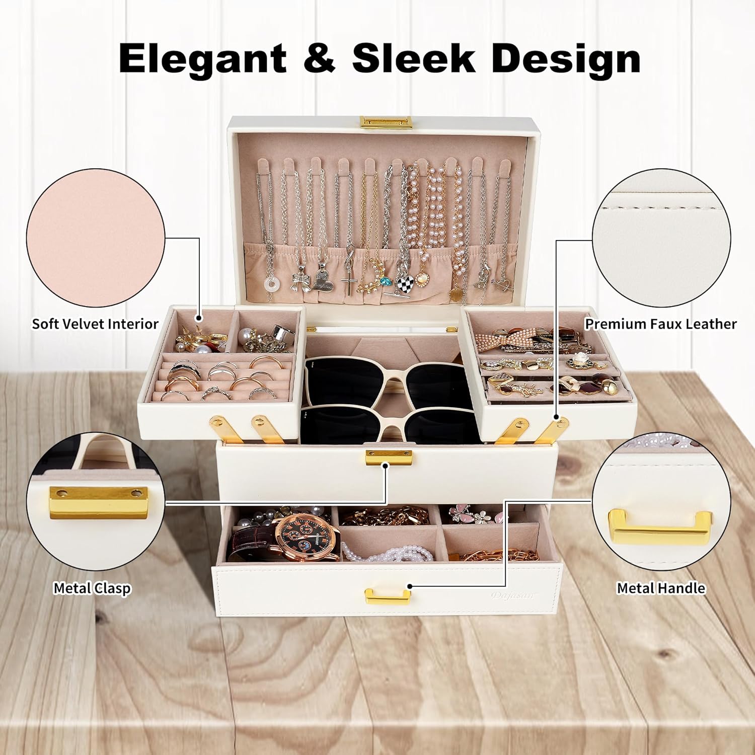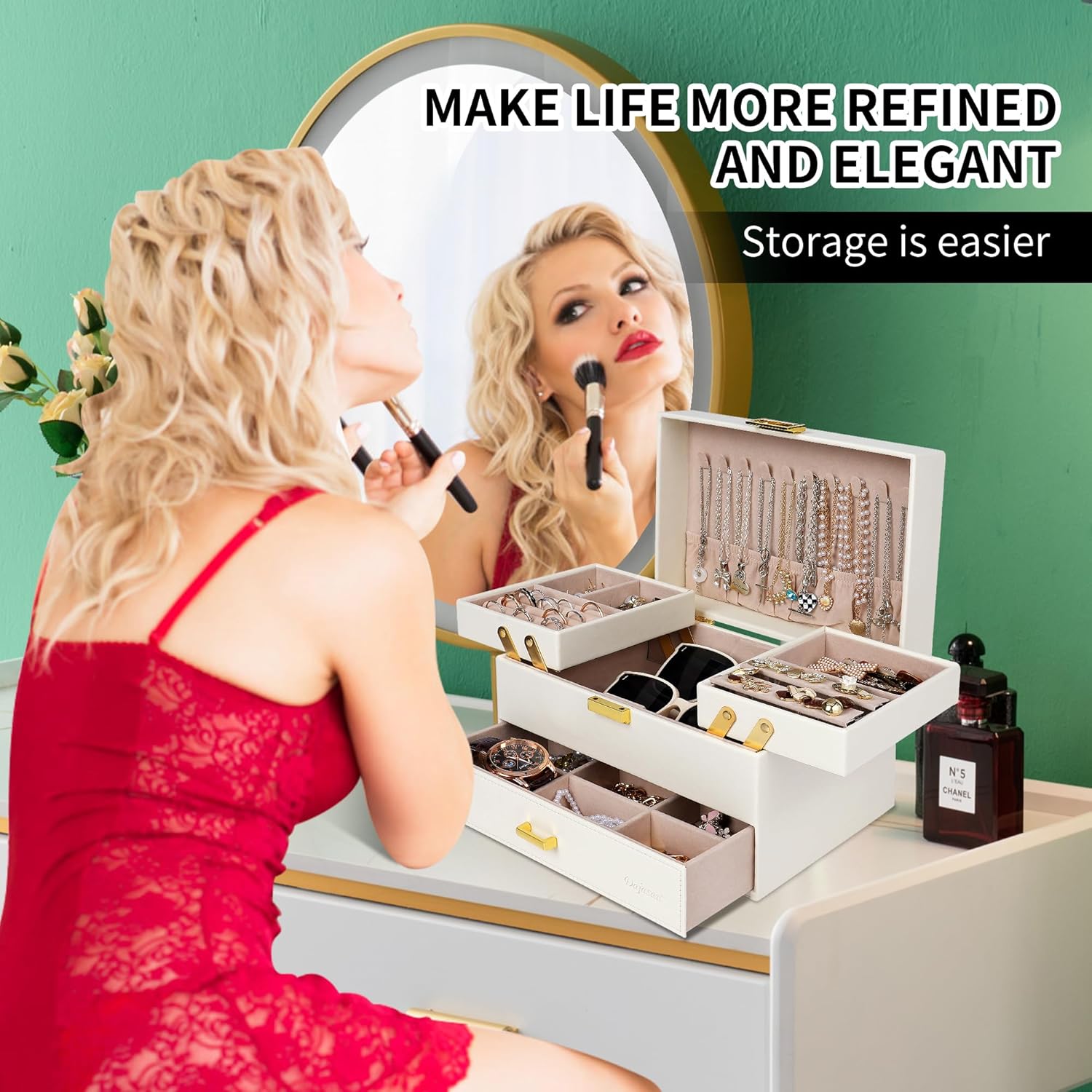 Dajasan Jewelry Organizer Box, Jewelry Box Organizer for Women Girls, 3 Layers Large Jewelry Storage Case for Earring, Rin...
