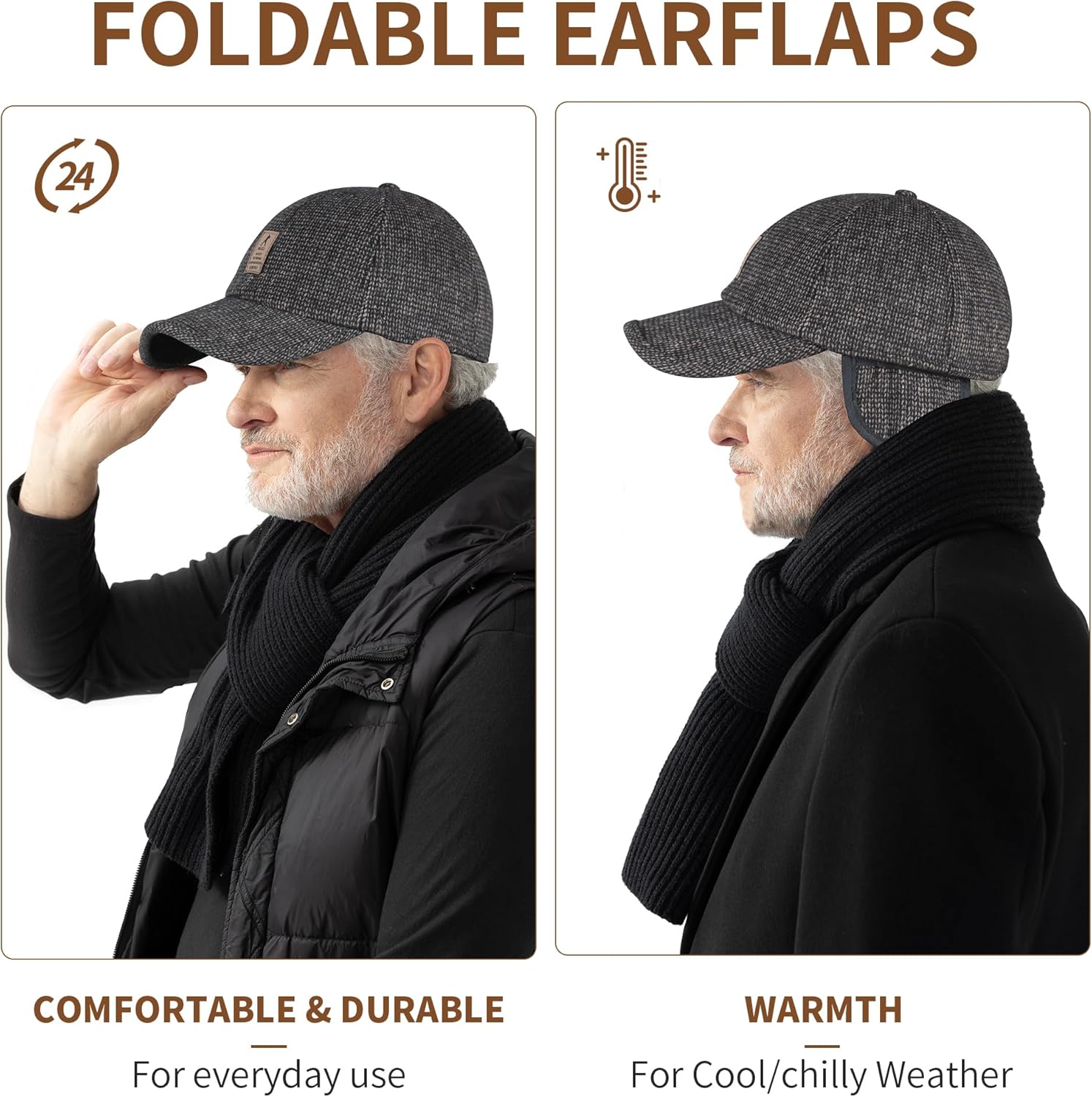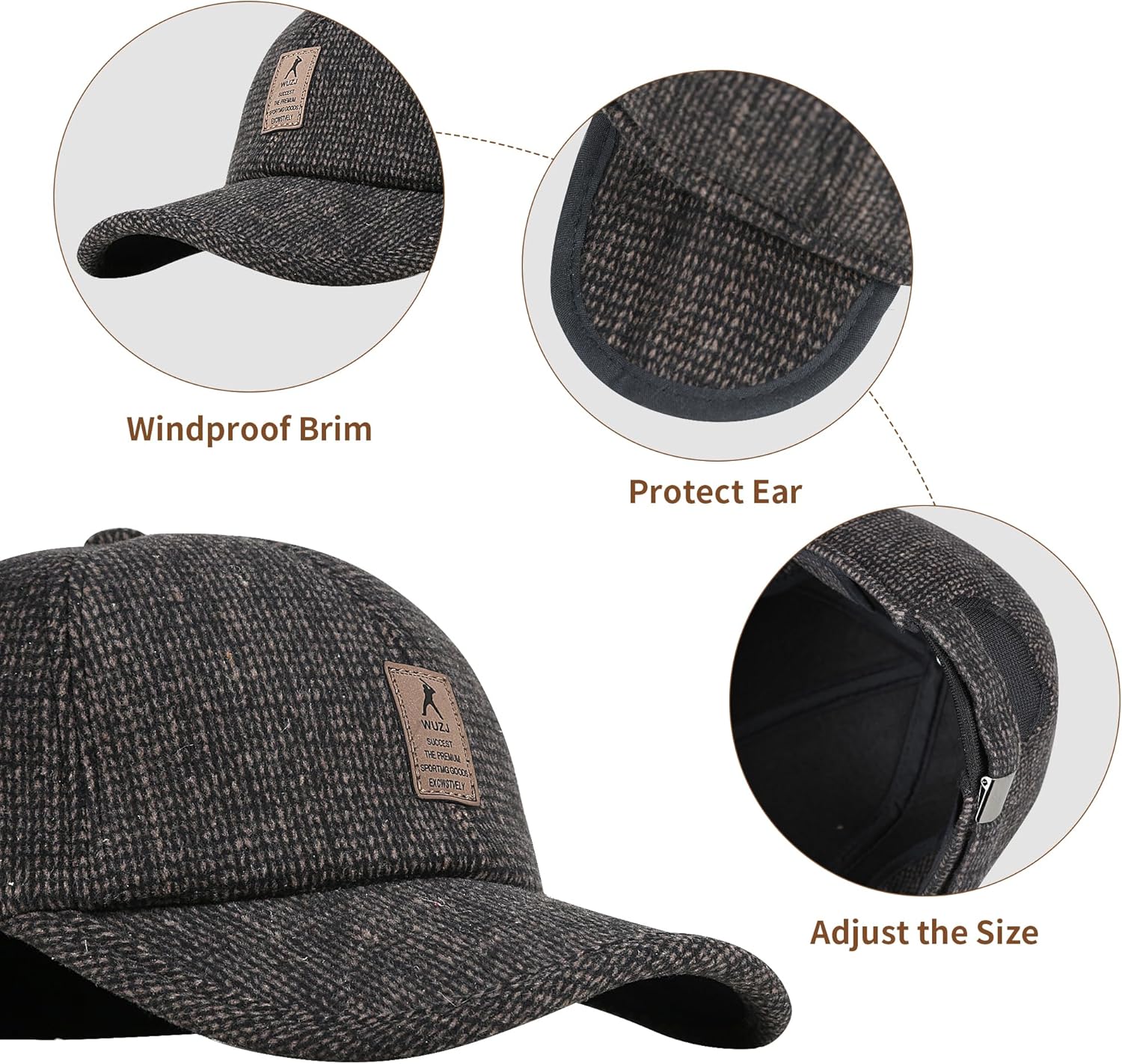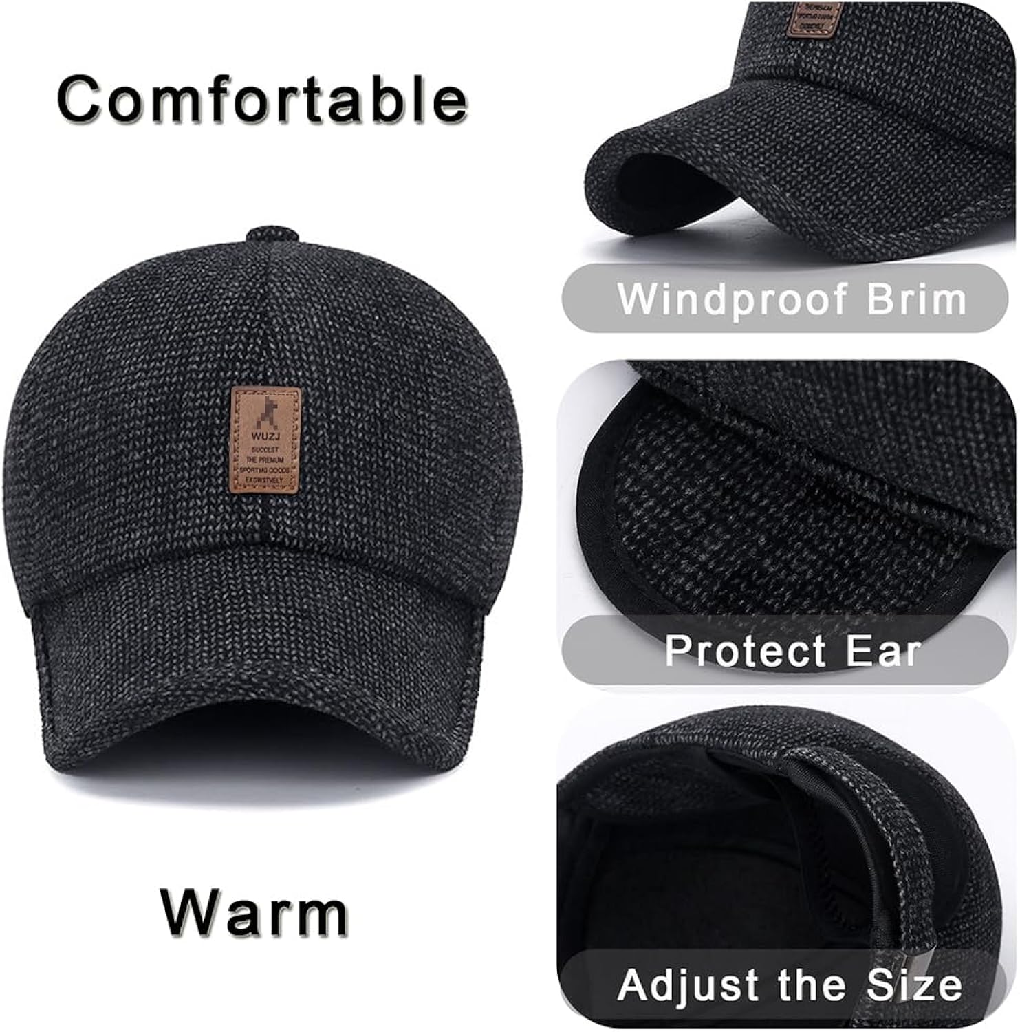 Winter for Men Outdoor Hat, Adjustable Warm Sport Golf Baseball Cap Hats Dad Caps Earflaps Thicken 55-60CM (Brown)