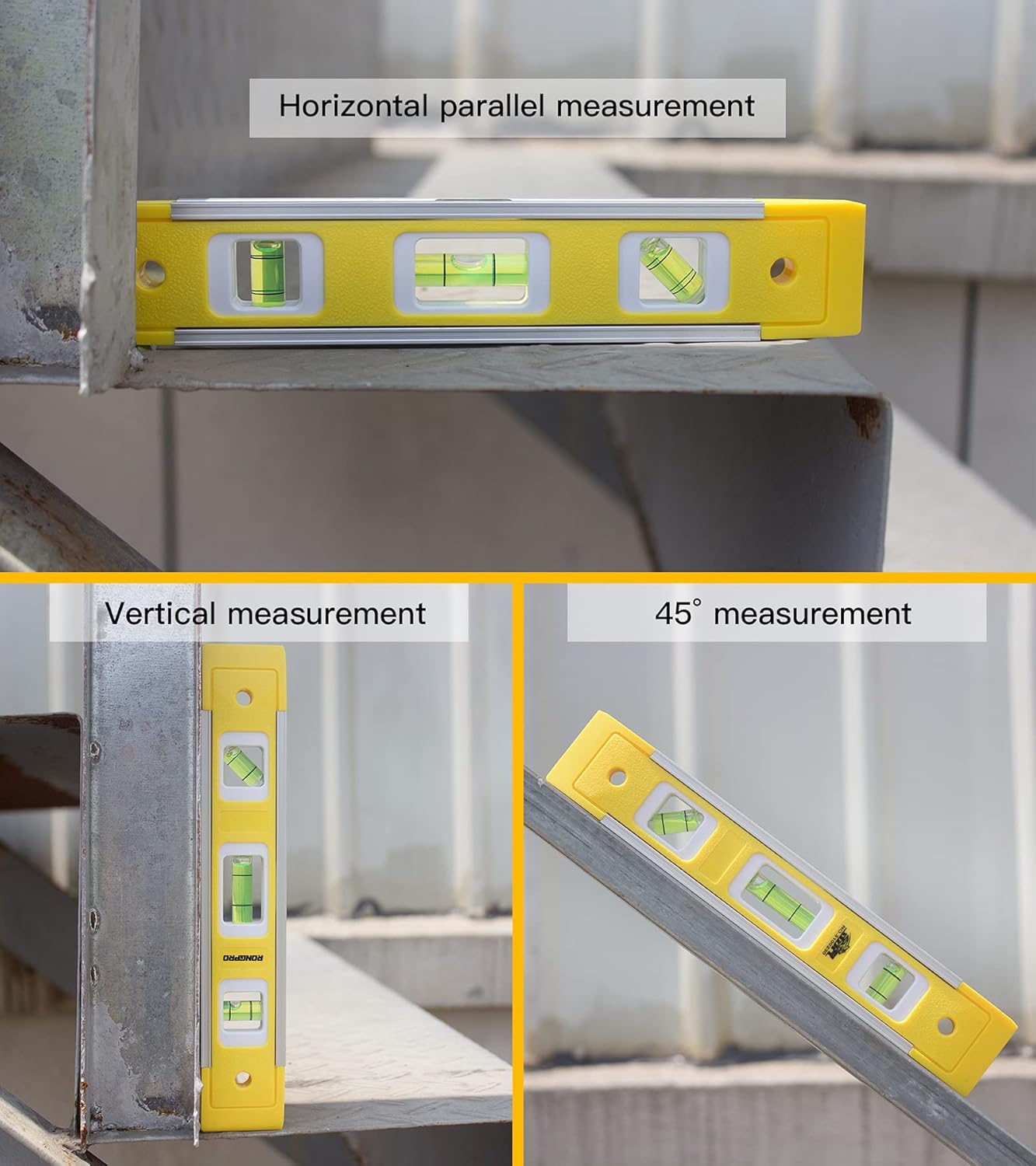 【Strong Magnetic Edge】The long magnetic edge uses advanced technology to enhance the magnetic force. It’s convenient enough that you can freely attach the level measuring tool to the magnetic spot. You don't have to worry about it falling.