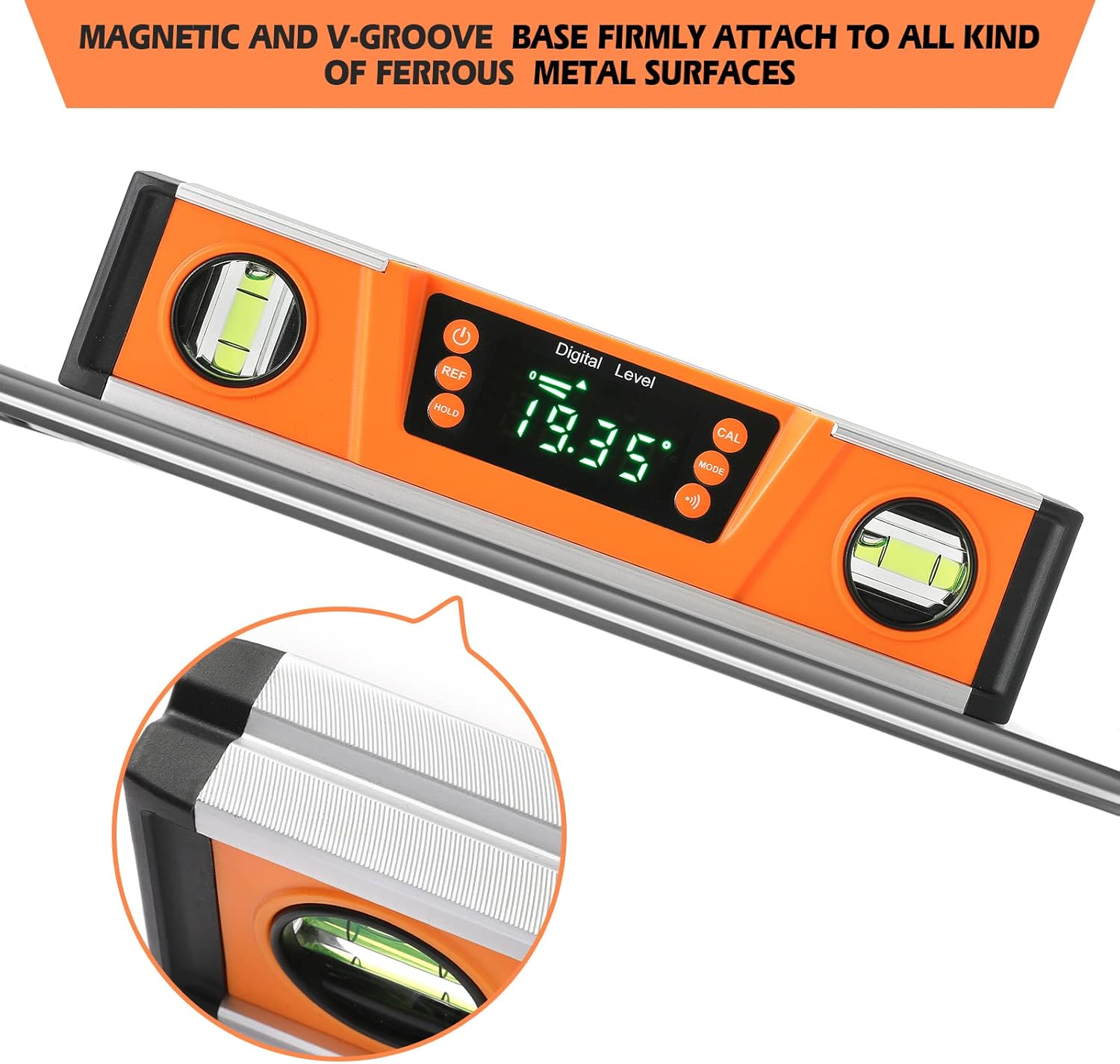 10-Inch Digital Torpedo Level and Protractor | Neodymium Magnets | Bright LED Display | V-GROOVE MAGNETIC BASE | IP54 Dus...