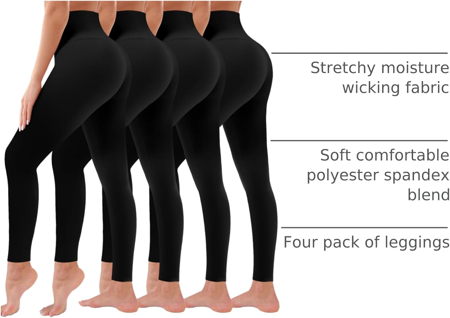 4-PACK LEGGINGS-Essential and timeless,our leggings are more than just clothing—they're a lifestyle choice and a classic wardrobe staple.4-pack leggings are ideal for rotating throughout the week.Priced at just $25 for a set of four.It come in three versatile sizes to suit various body types.The highly elastic design guarantees a comfortable fit for everyone,making it easy for those with curvier thighs or petite frames to find their perfect leggings.Embrace comfort and style crafted just for you