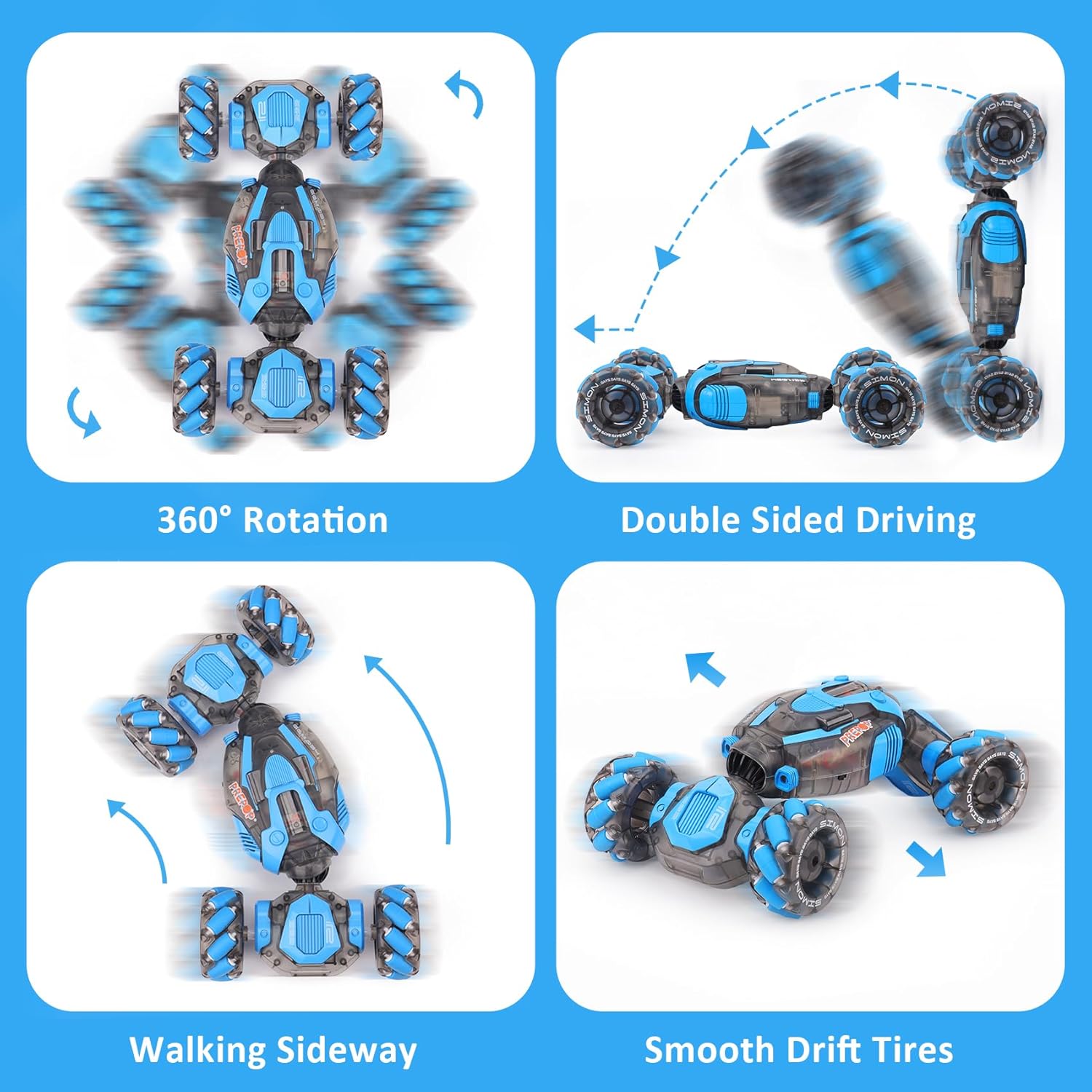 Multiple Control Modes: 2.4GHz handle remote control signal is sensitive, with automatic demonstration stunt function kids can easily get started. The stylish gravity-sensing watch remote control makes playing with RC stunt cars more immersive and fun.
