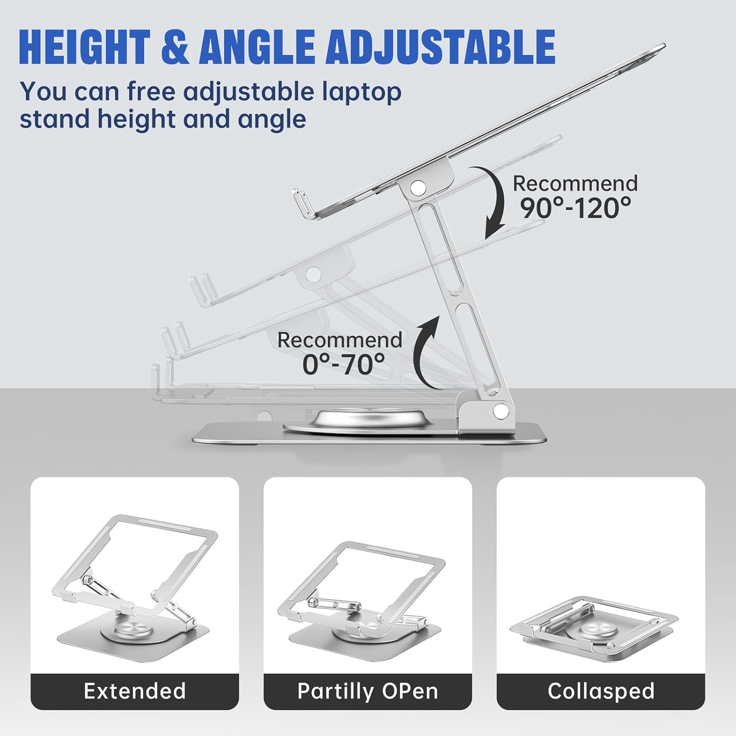 【360° Swivel Flexibility】 Effortlessly rotate your laptop 360° with a smooth dual-axis base, perfect for sharing screens, presentations, or adjusting to any angle. This unique feature enhances collaboration and transforms your workspace with unparalleled versatility.