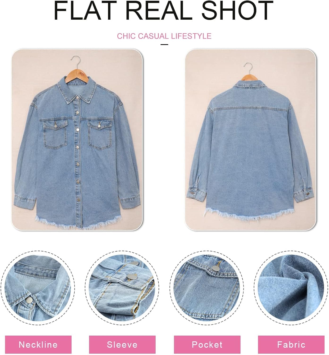 luvamiaDenim Jacket for Women Oversized Button Down Casual Jean Shacket Jackets Long Sleeve Frayed Hem Western Trendy4.4 out of 5 stars302 302 customer raitings $40.99$4099