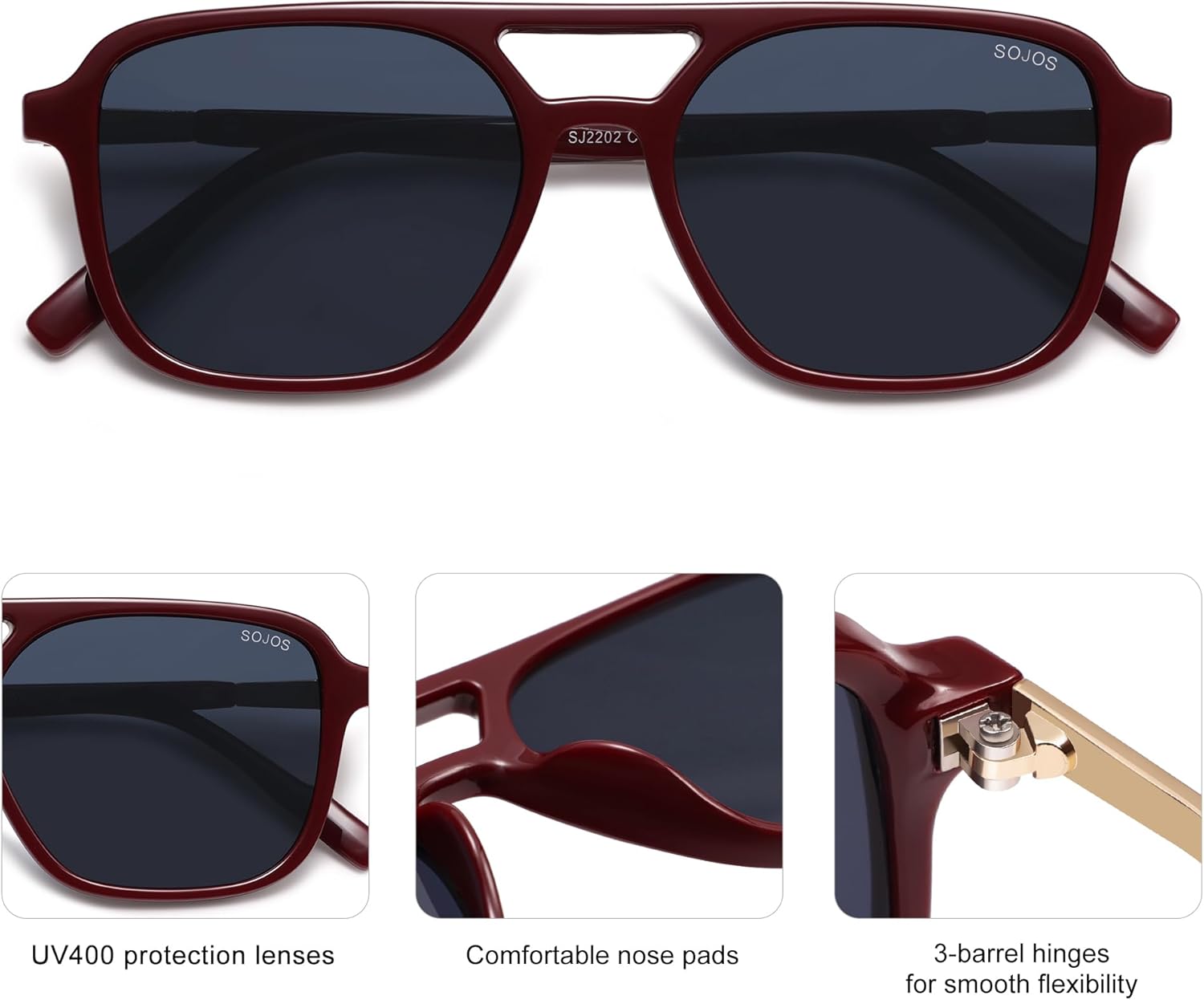 SOJOS Retro Aviator Sunglasses for Women Men,Trendy Rectangle Womens Mens Shades Sun Glasses SJ2202