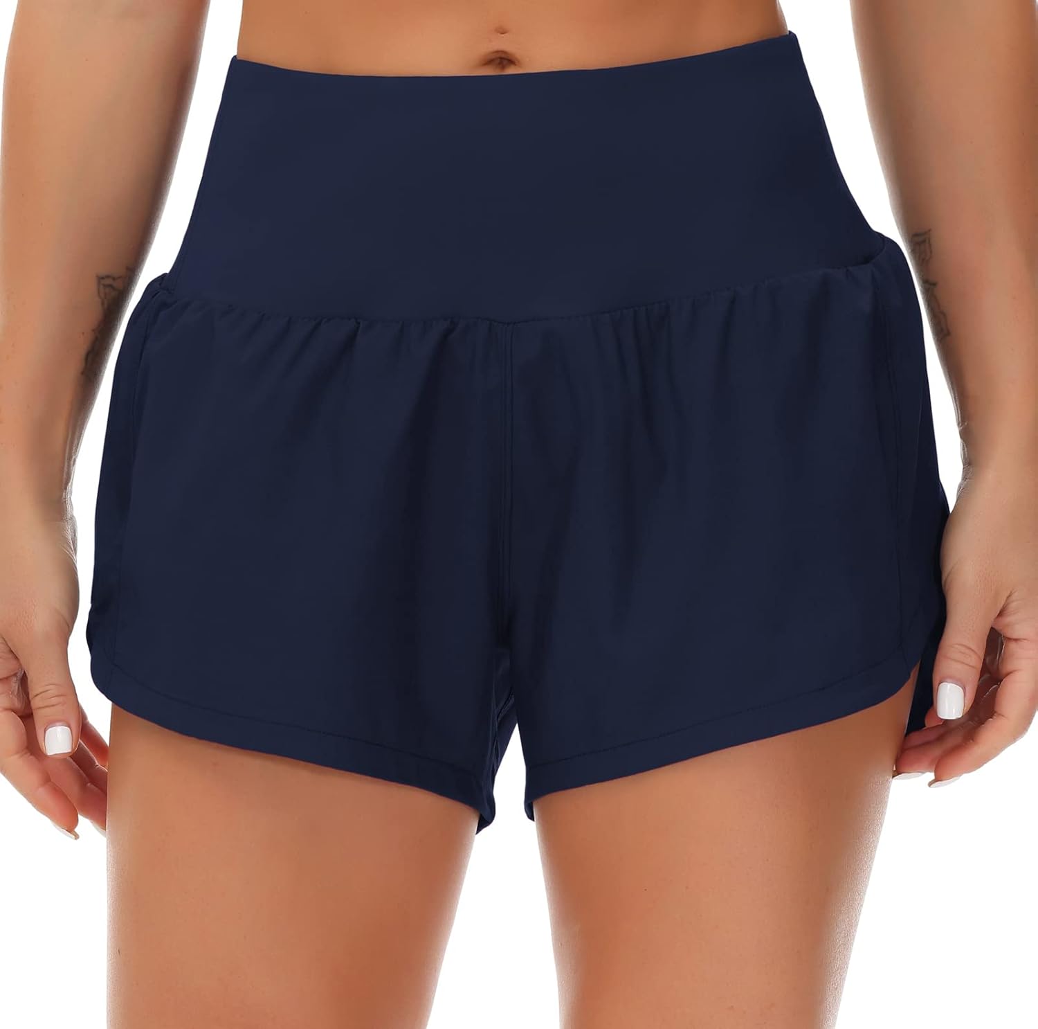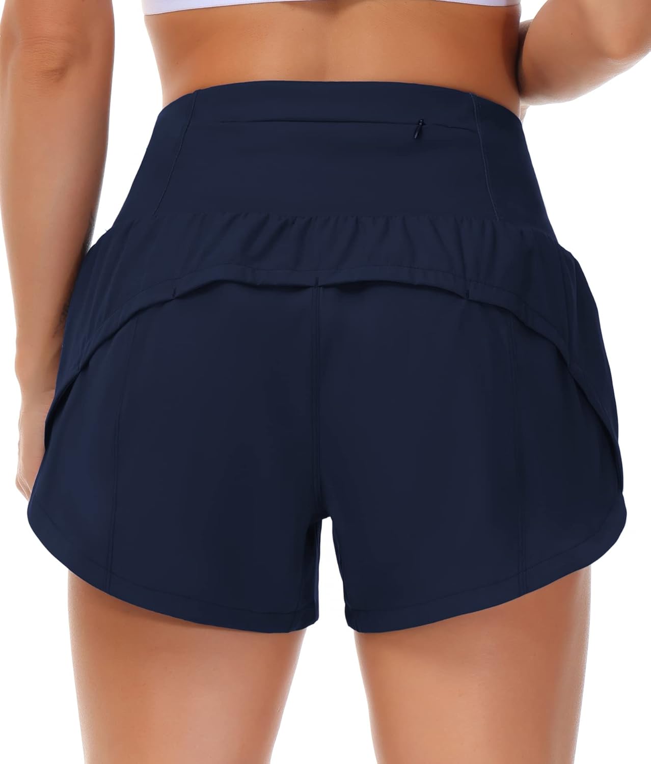 THE GYM PEOPLE Womens High Waisted Running Shorts Quick Dry Athletic Workout Shorts with Mesh Liner Zipper Pockets