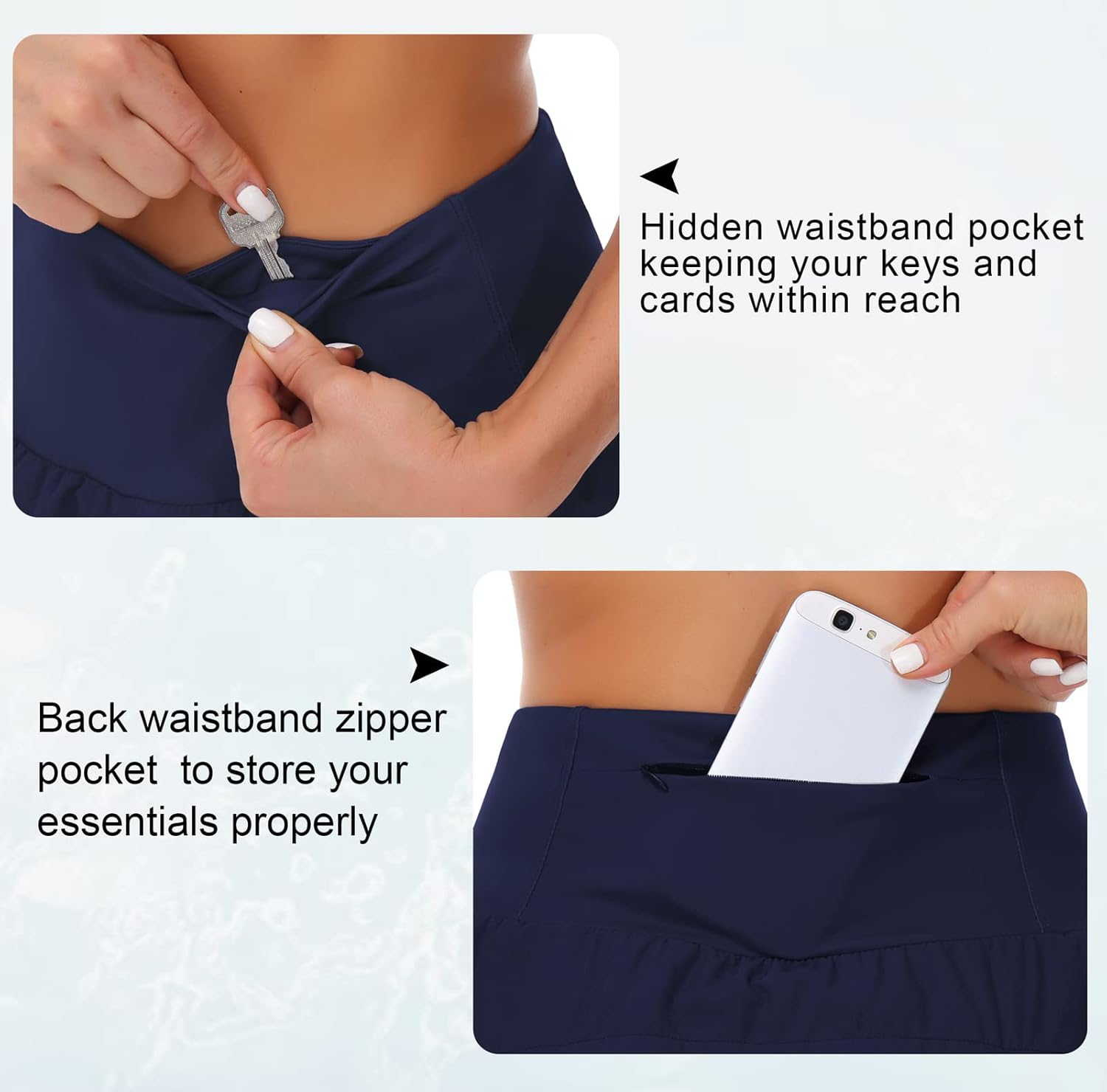 Utility Pockets: Hidden waistband pocket, keeping your keys and cards within reach. Back waistband zipper pocket to store your essentials properly, no worries when workout.