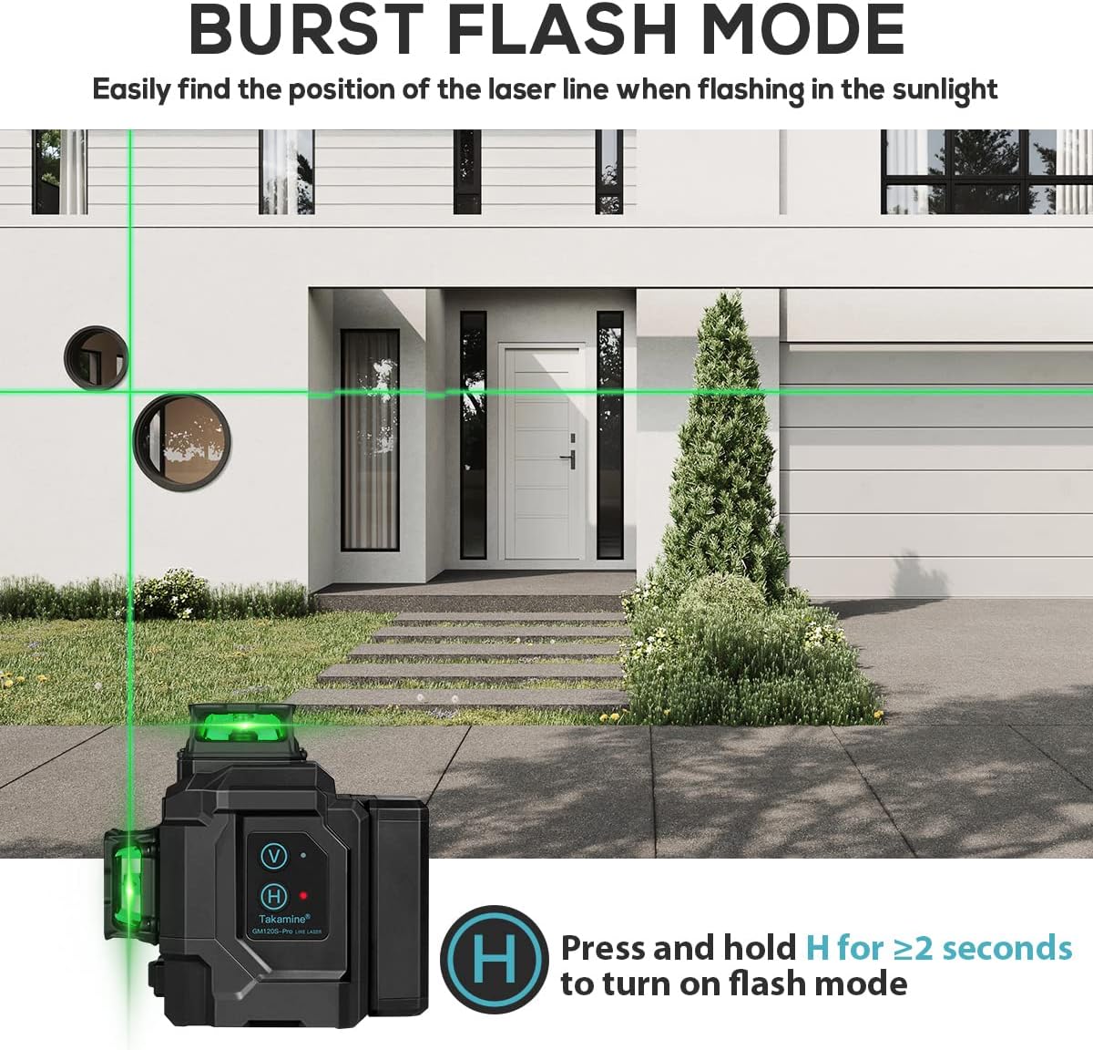 Type-c charging and Dual Power.This laser measurement tool adopts the SHARP green laser level from Japan, which has excellent brightness and higher stability.The powerful laser is applied to construction and picture hanging.Newly upgraded Type-C charging is 60% faster than regular USB charging.Takamine laser tool employed large capacity lithium battery. An extra battery is included for backup to ensure you can work for long hours