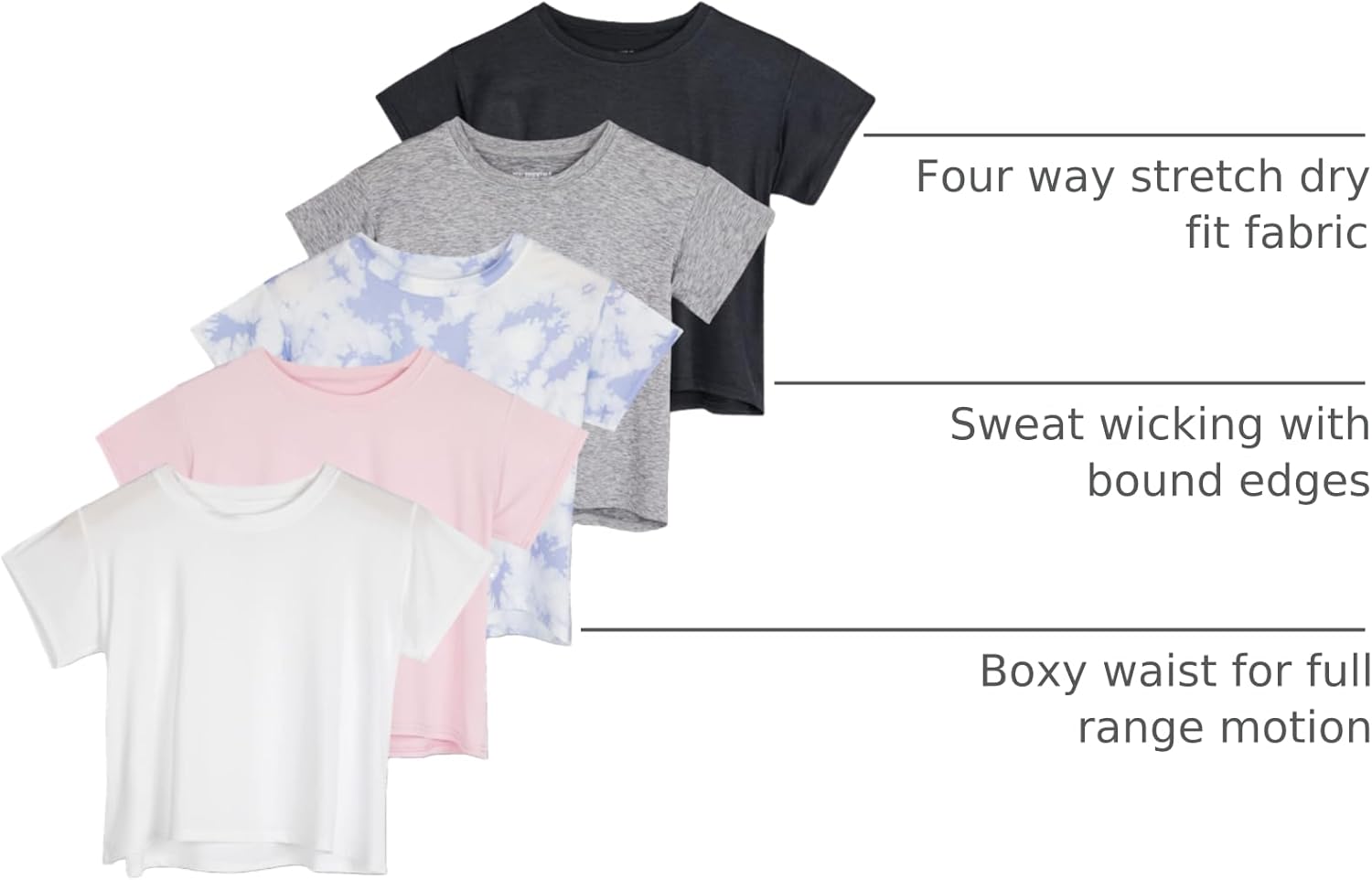 Real Essentials 5 Pack: Women's Dry Fit Crop Top - Short Sleeve Crew Neck Stretch Athletic Tee (Available in Plus Size)