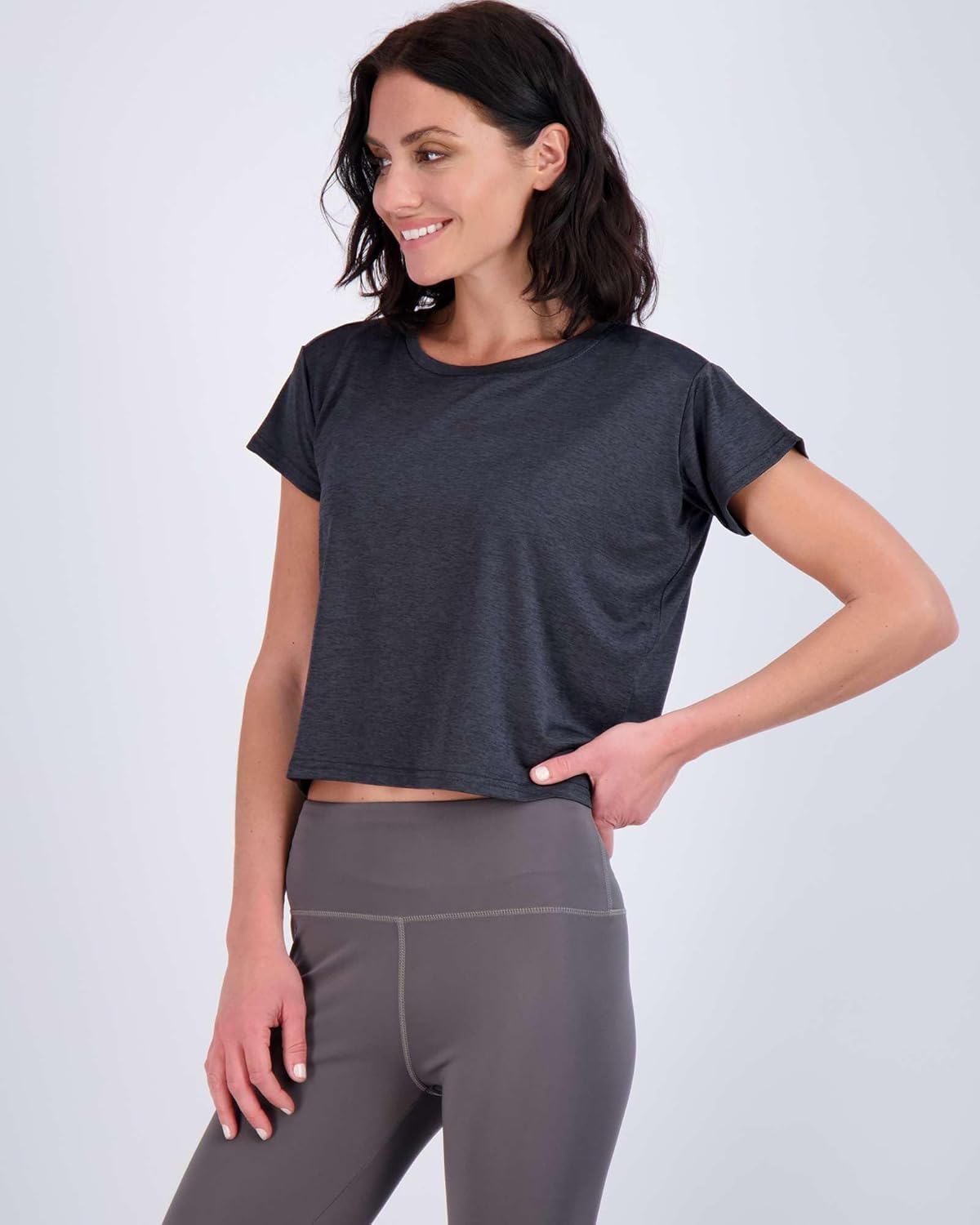 Available In Both Regular & Plus Sizing (S-3X) Ideal Crew Neck Short Sleeve Boxy Crop Top for Yoga, Exercise, Fitness, Gym, Running, Any Type Of Workout Or Everyday Casual Use.