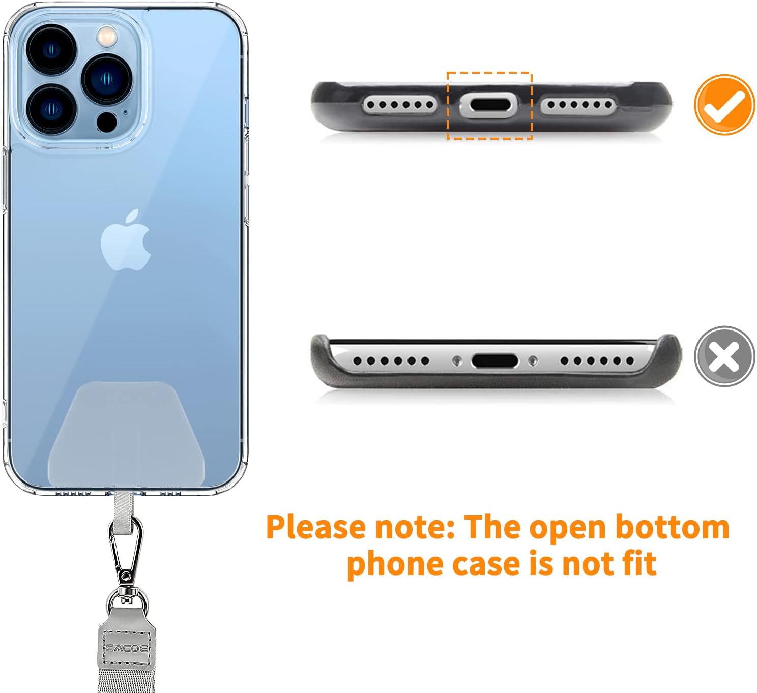 【Easy Charging】The universal cell phone chain does not block your charging hole, so you can easily charge your phone while using the product.