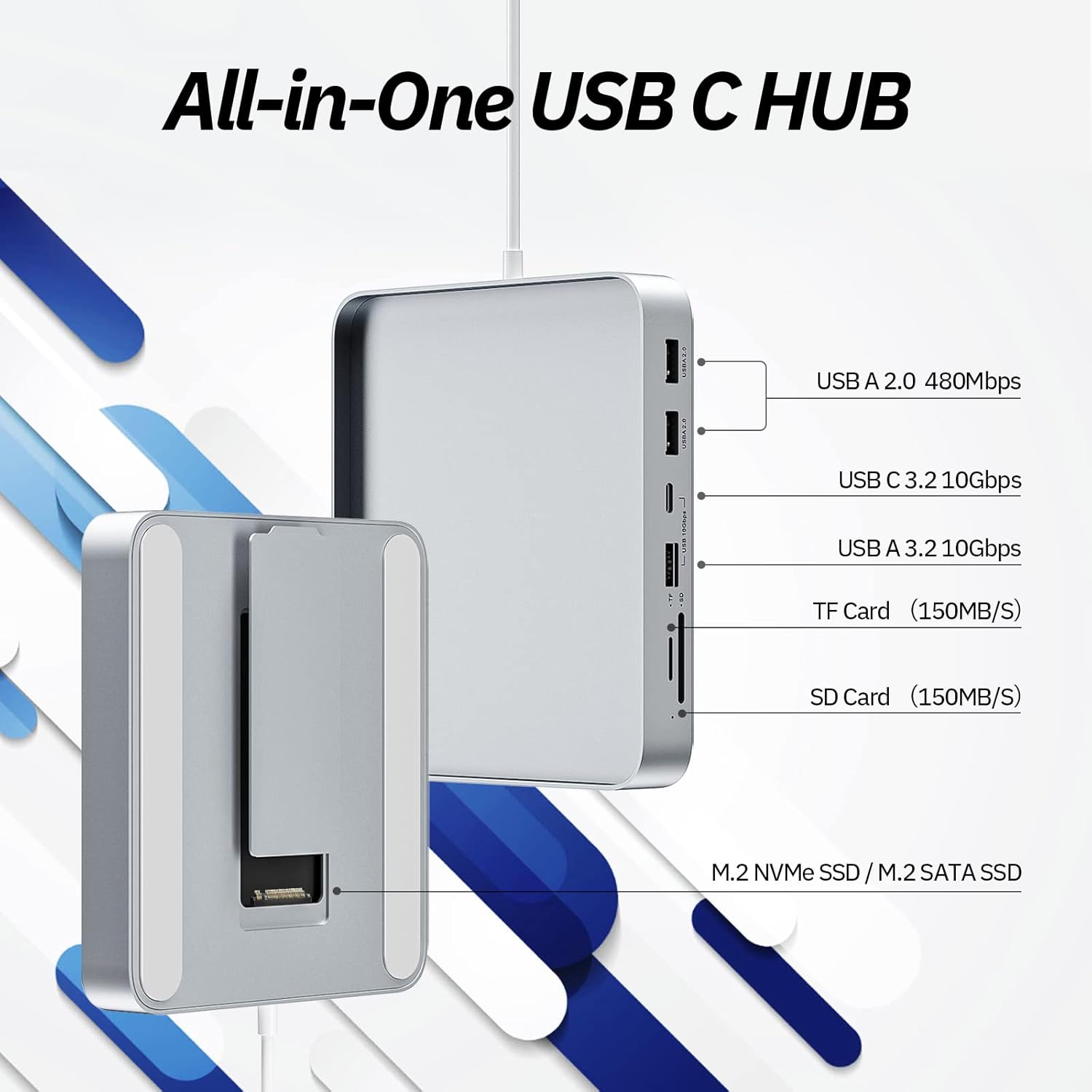 【7-in-1 USB c Hub】: The iMac 24-inch 2023/2024 accessories support 7 ports for easy access to SD/TF cards, and USB data storage. The iMac adapter output ports include 1 x USB C 3.2 Gen2 10Gbps, 1 x USB A 3.2 10Gbps, 2 x USB A 2.0 480Mbps, SD/TF card reader, 1 x M.2 NVMe SSD ports. The iMac hub supports SD/TF simultaneous reading and writing, plugging and unplugging between all interfaces will not be affected.