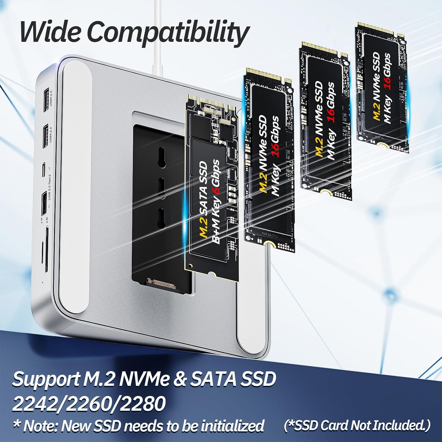 【Support M.2 SSD】: The multi-functional iMac accessories support a high-speed SSD (Not Included) to expand the storage of the iMac 24 to meet different needs. The USB c hub multiport adapter supports the M.2 NVMe SSD or M.2 SATA SSD 10Gbps. SSD is easy to install, and the iMac adapter external solid state enclosure adapter supports 2242/2260/2280 M.2 SSD(Max,2TB).