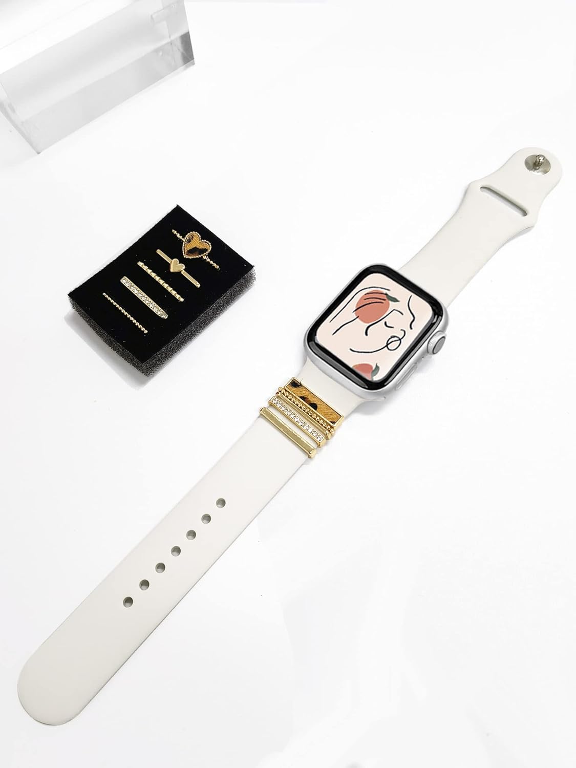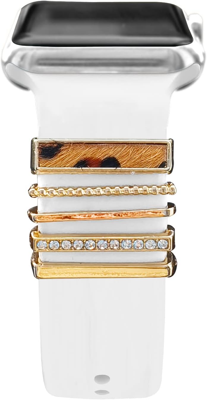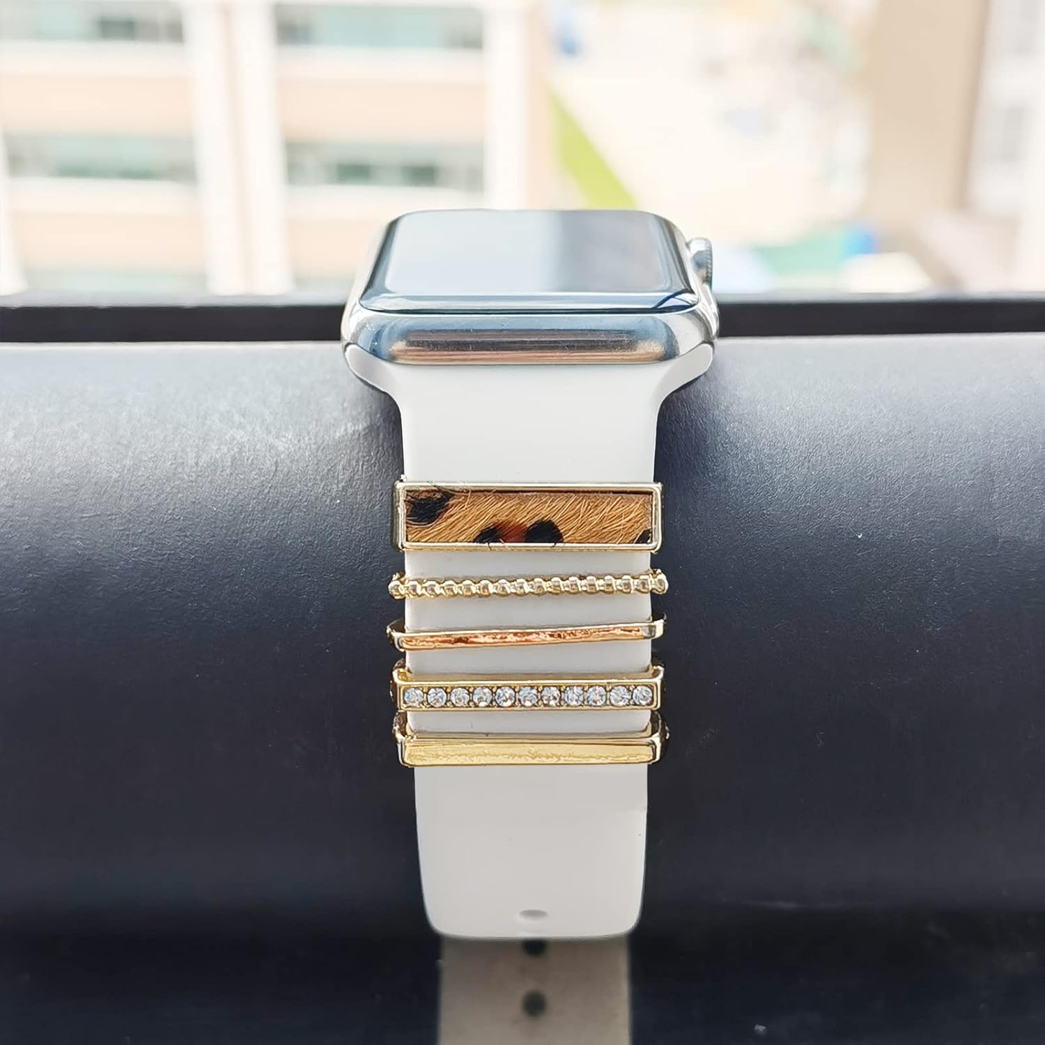 【Design Trendy】: 5 pieces/set watch band Charms .make by Stainless steel plated with gold or black or Silver color + Bling Imitation Diamond Rhinestone or nice beads , with reasonable design is lasting long and keep in your watch band.The watch band ring is becoming more and more popular as a band Decorative accessory. It can be directly placed on the watch strap. It can also be used repeatedly according to the clothes, accessories and bags worn to make your watch unique.