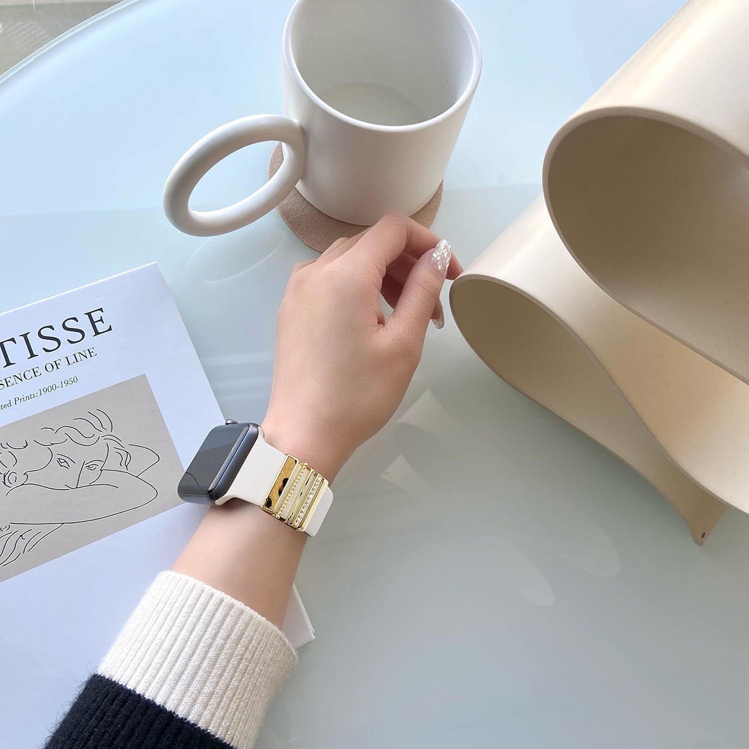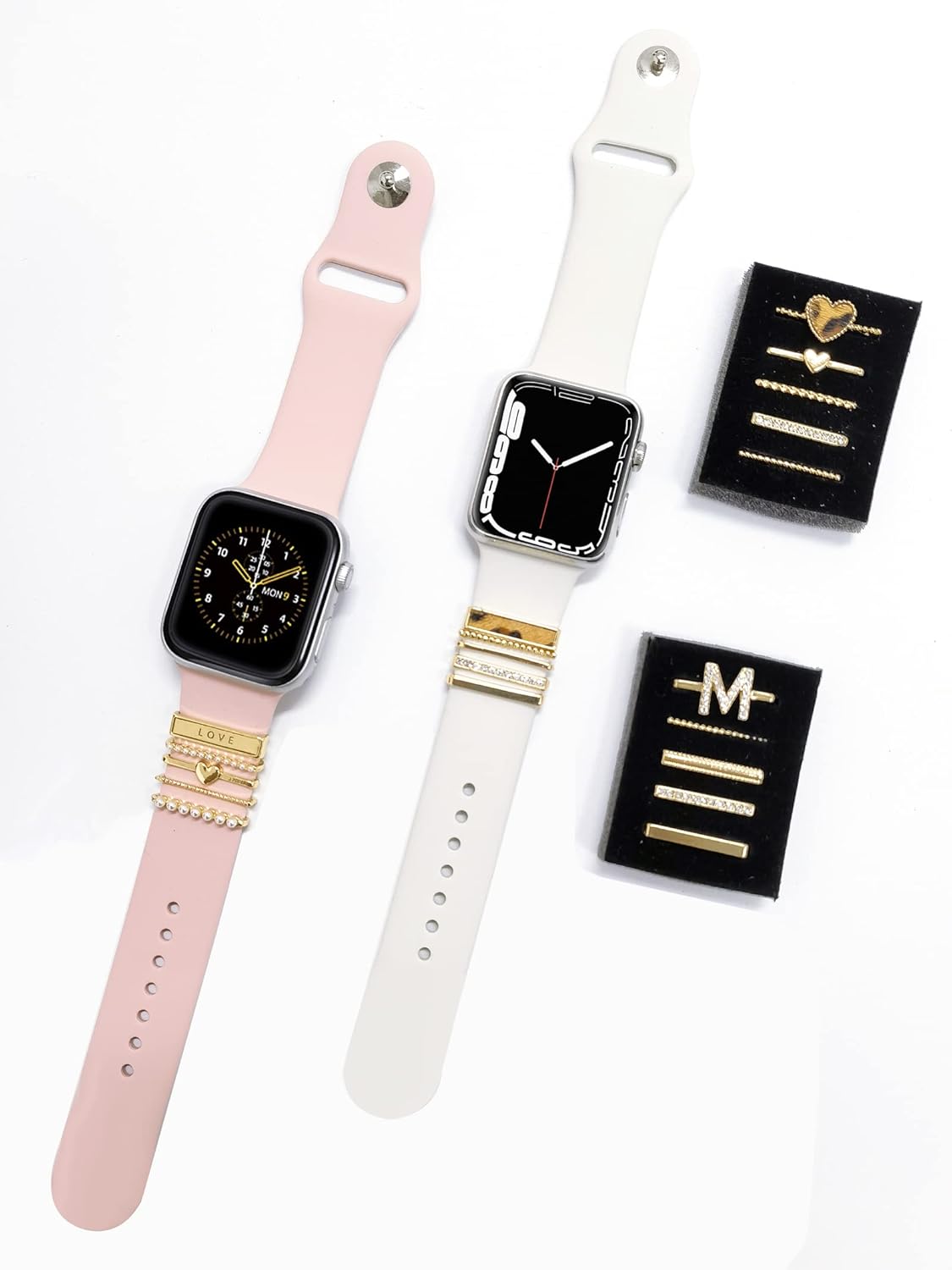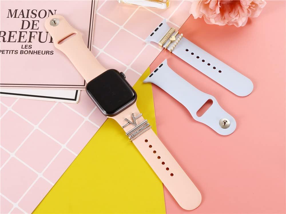 5Pcs Charms for Apple Watch band 41mm 45mm 40mm 44mm 38mm 42mm 46mm 49 Women,Diamond+Metal Jewelry Decorative Ring For iWa...