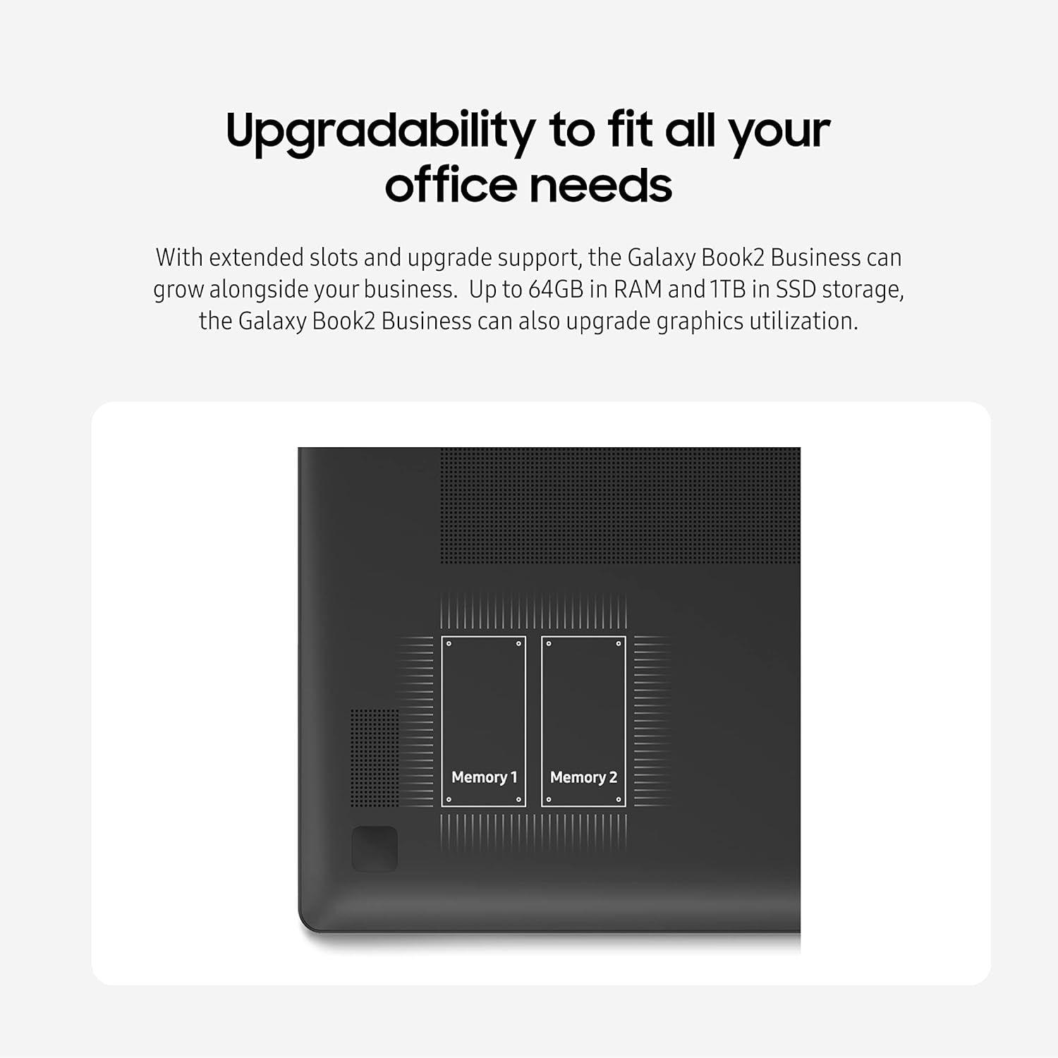 EXPANDABILITY & MANAGEABILITY: Galaxy Book2 Business will grow alongside your business; Enhance your performance, increase your storage, download new driver packs and connect to a wide range of ports no matter which cord is required