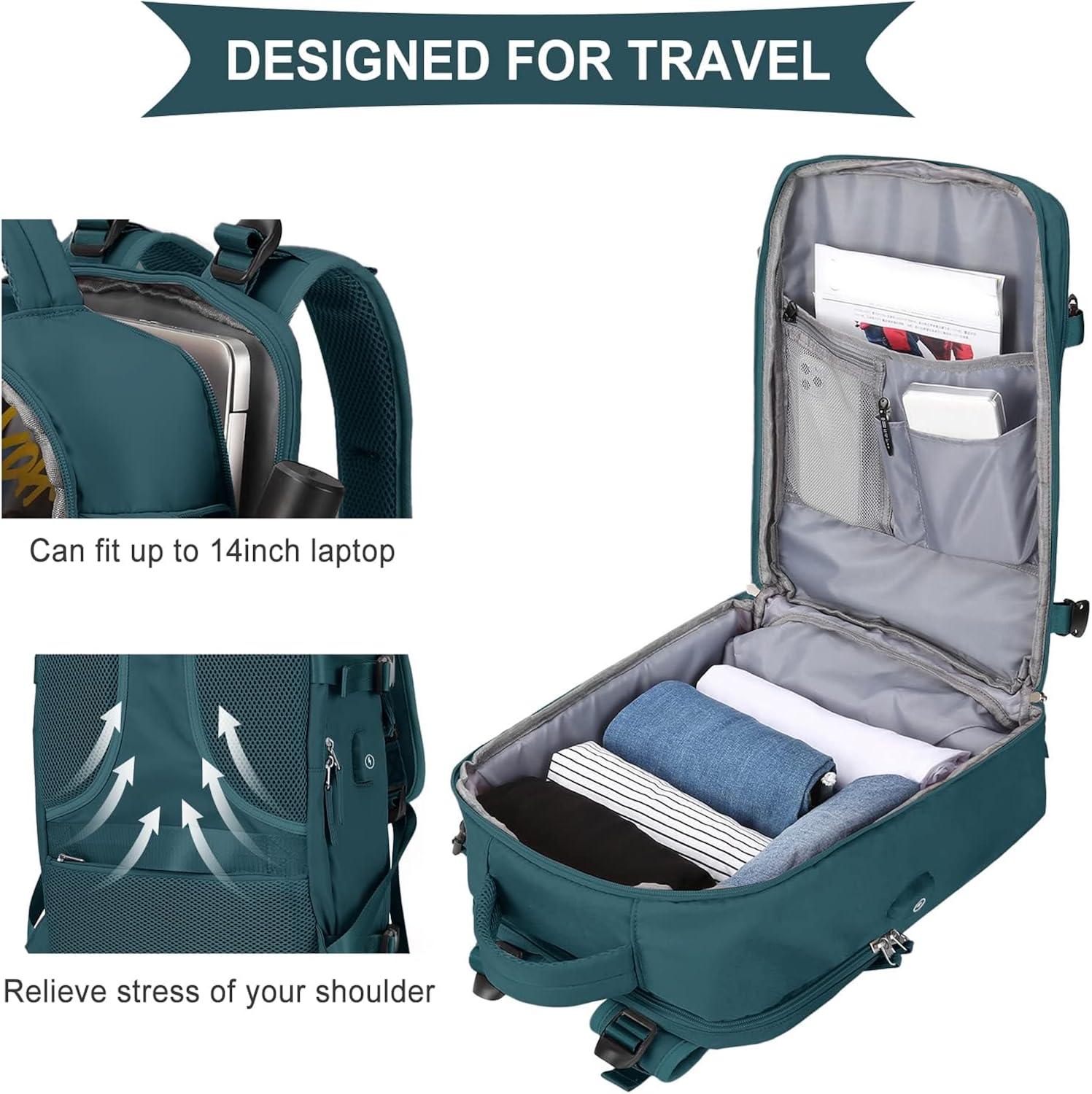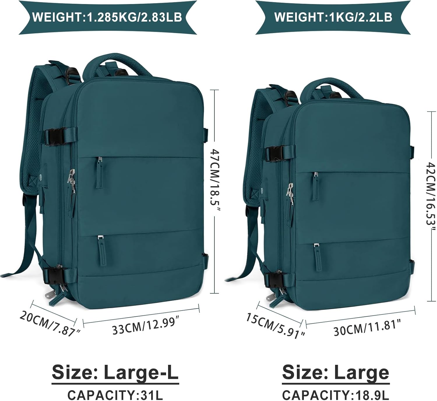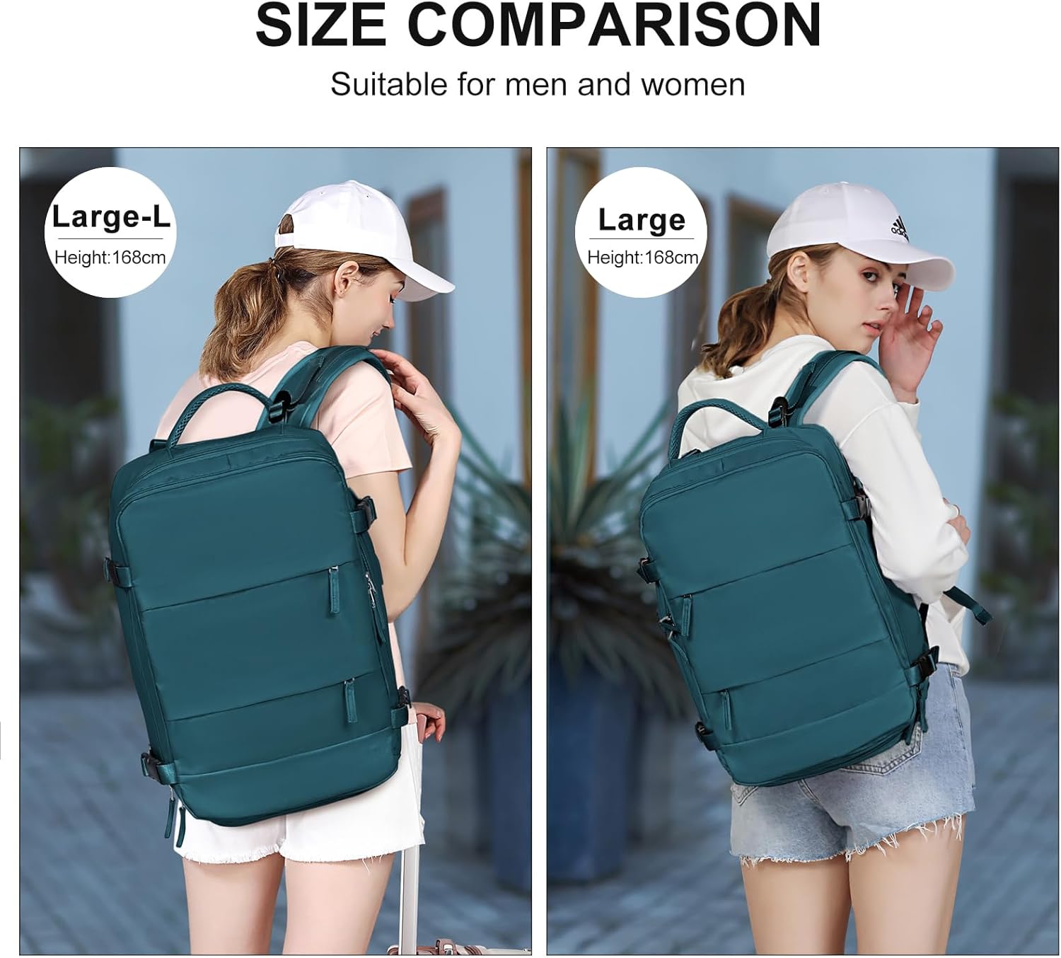 【Large Travel Backpack for women】Size:Large;This backpack is made of waterproof durable polyester, good air permeability and heat dissipation with two padded shoulder straps, offers lightweight carrying and of force reinforcement, relieve the pressure of your shoulders, and keeping cool when you carry it for a long time. And it is tough, firm and does not fade.