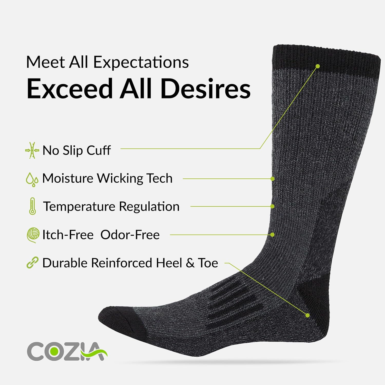 COZY YET BREATHABLE Perfect as winter socks for men and women who want to stay warm without their feet feeling sweaty, these wool socks feature ventilation channels and moisture control fibers that wick away sweat while fighting unpleasant foot odors.