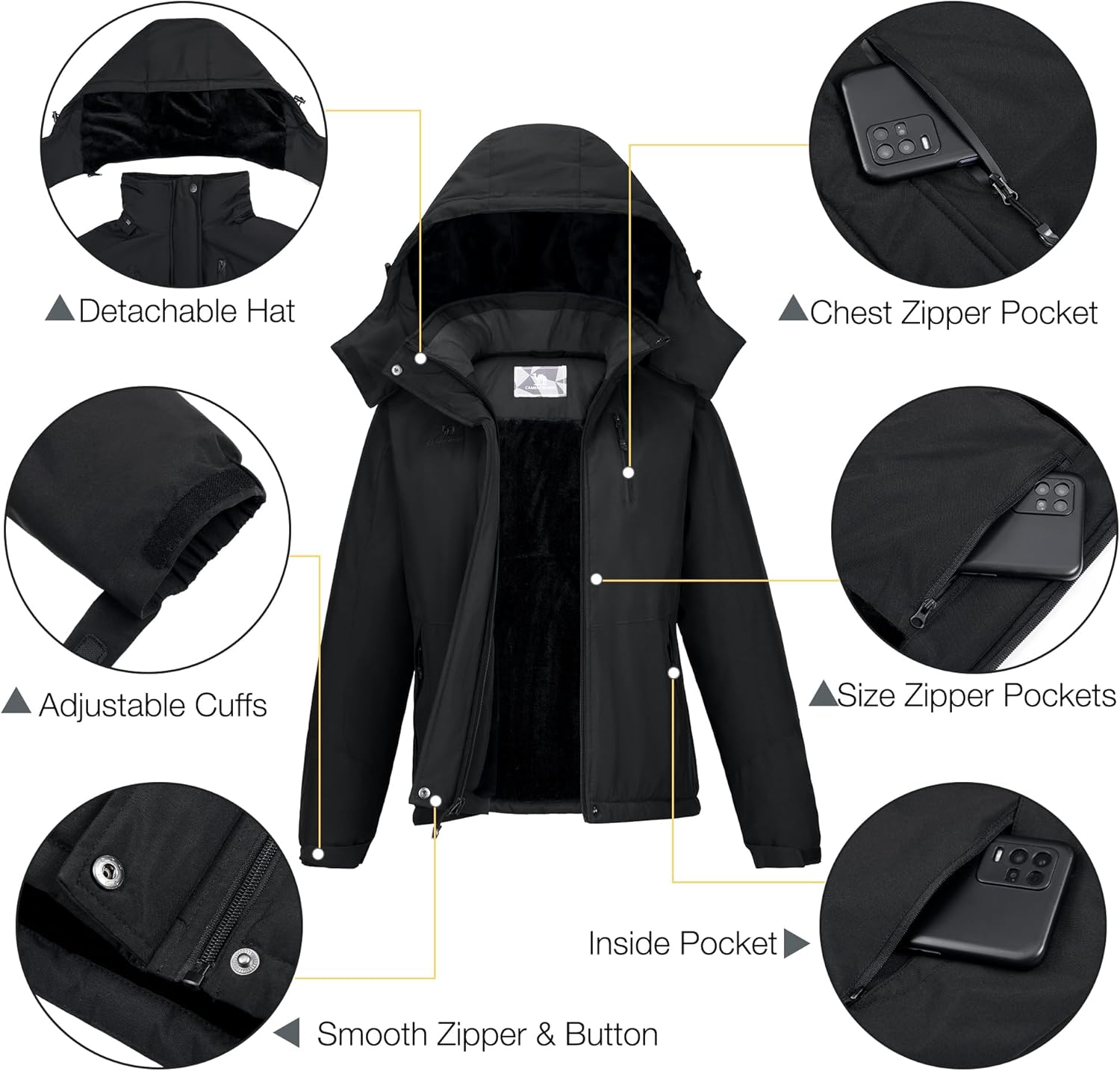 ❄Warm & Durable Snow Jacket: Outer shell fabric is durable & Wear-resistant, the inner soft fleece lining is thick enough to keep you warm and comfortable during the cold winter yet breathable to wear. Waterproof windproof winter jacket coat will keeping you warm and comfortable in cold weather winter outdoor. The stitching is reinforced,solid enough to wear for years.