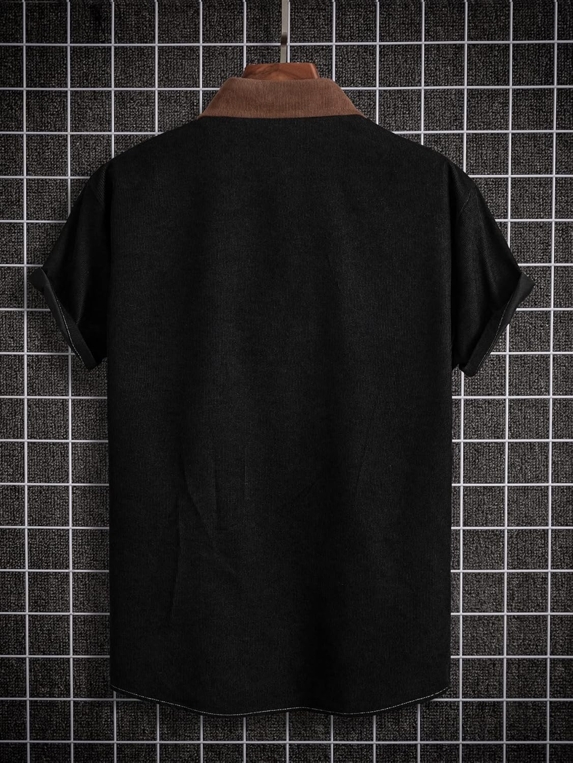 Feature: Color Block, Button Front, Short Sleeve, Collar, Patched Pocket, Regular Fit, Casual