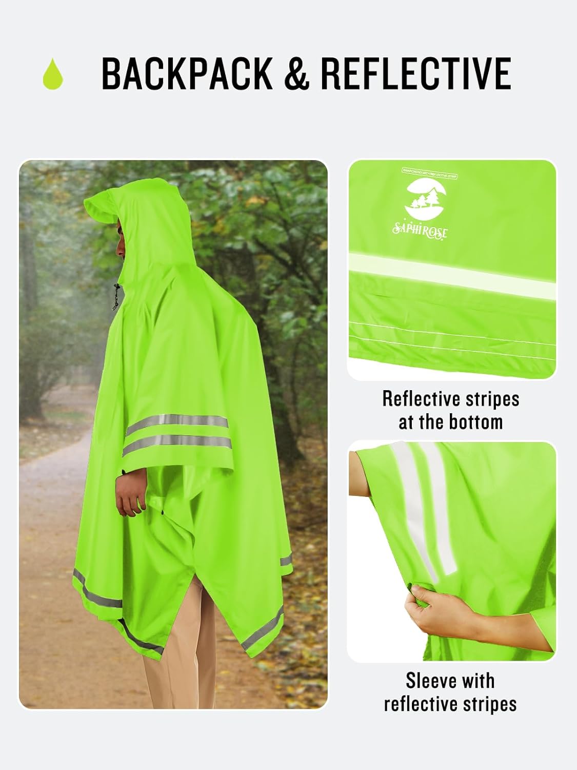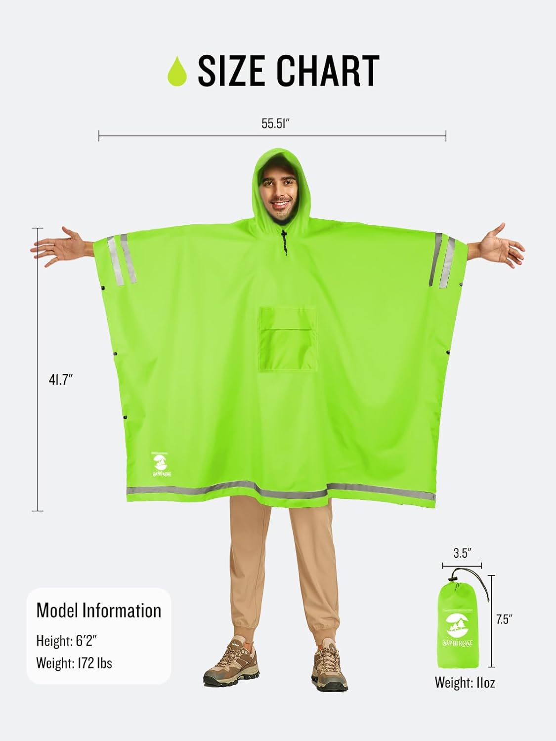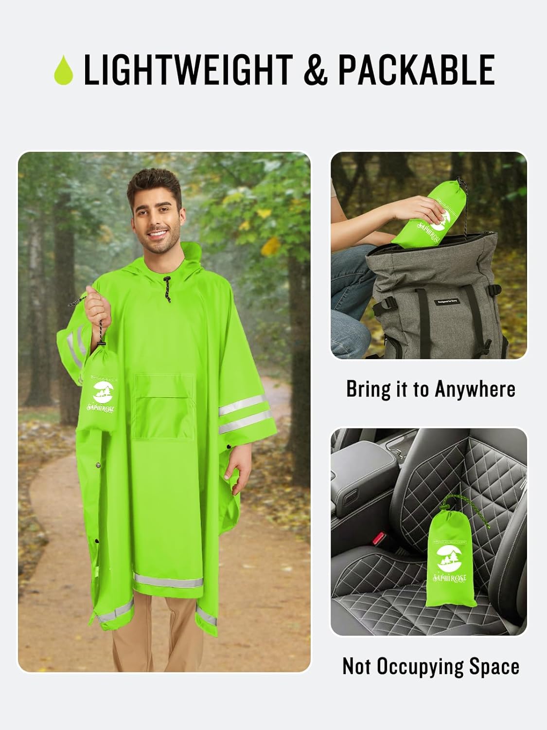 [Compact and Portable]: This rain poncho is designed for convenience. It folds easily and weighs just 8.5 oz when packed into its compact storage pouch, making it effortlessly portable in any backpack or sling bag,it's always ready to shield you from the rain.