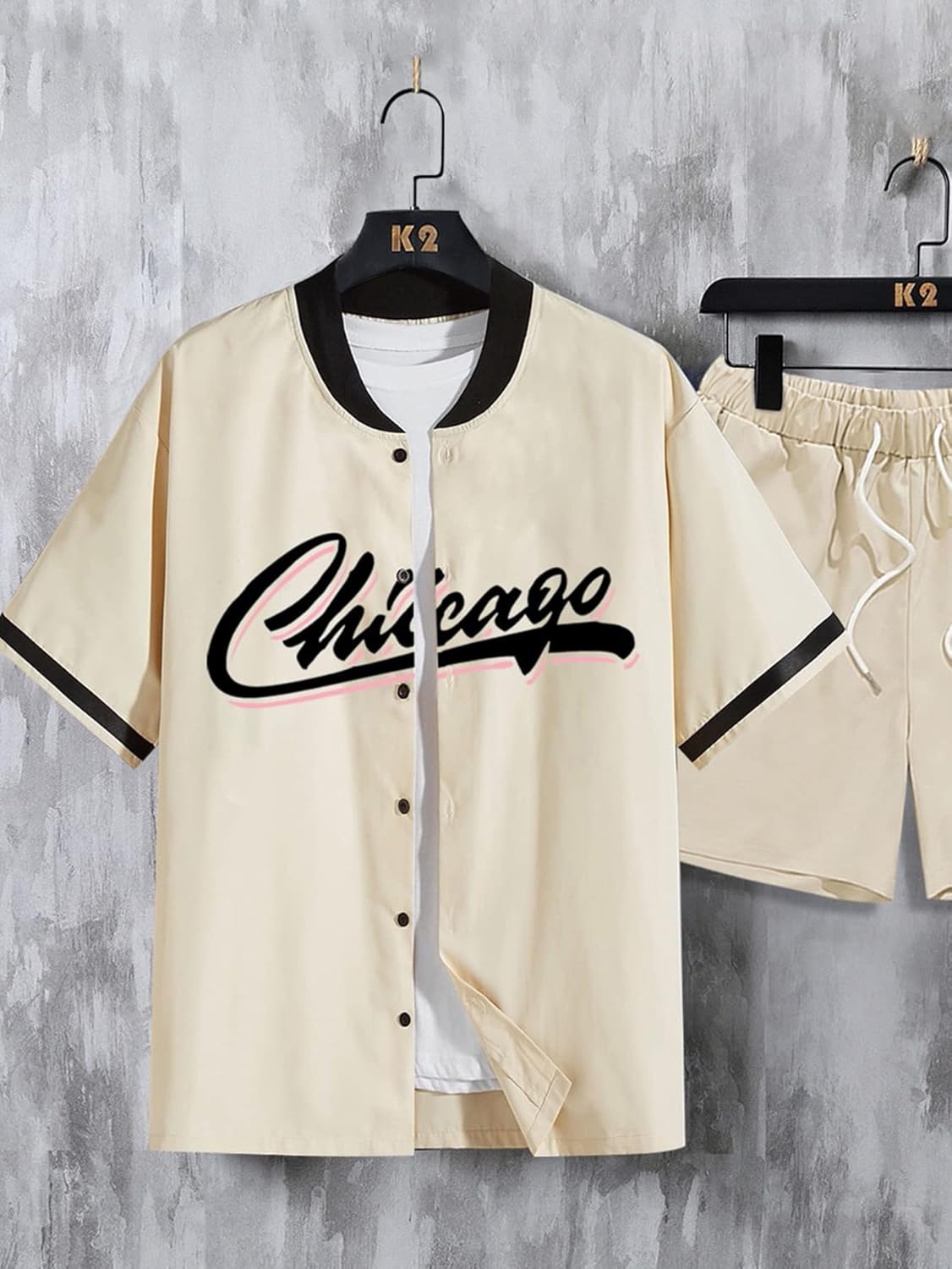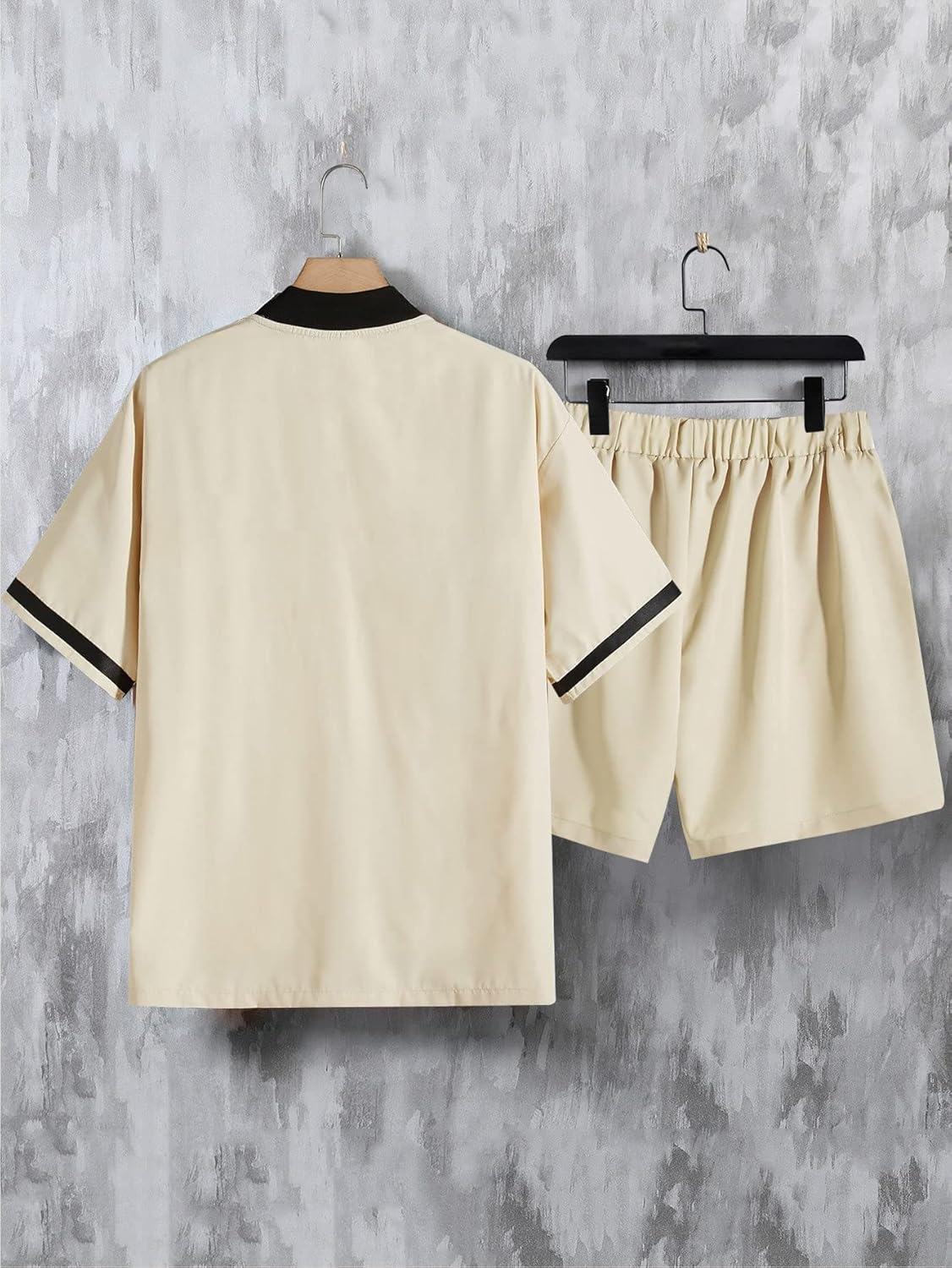 This mens shorts sets 2 piece outfits design with button front, baseball collar, short sleeve, blouse top, drippy shirts, drawstring waist shorts, drippy shorts, men 2 piece outfits