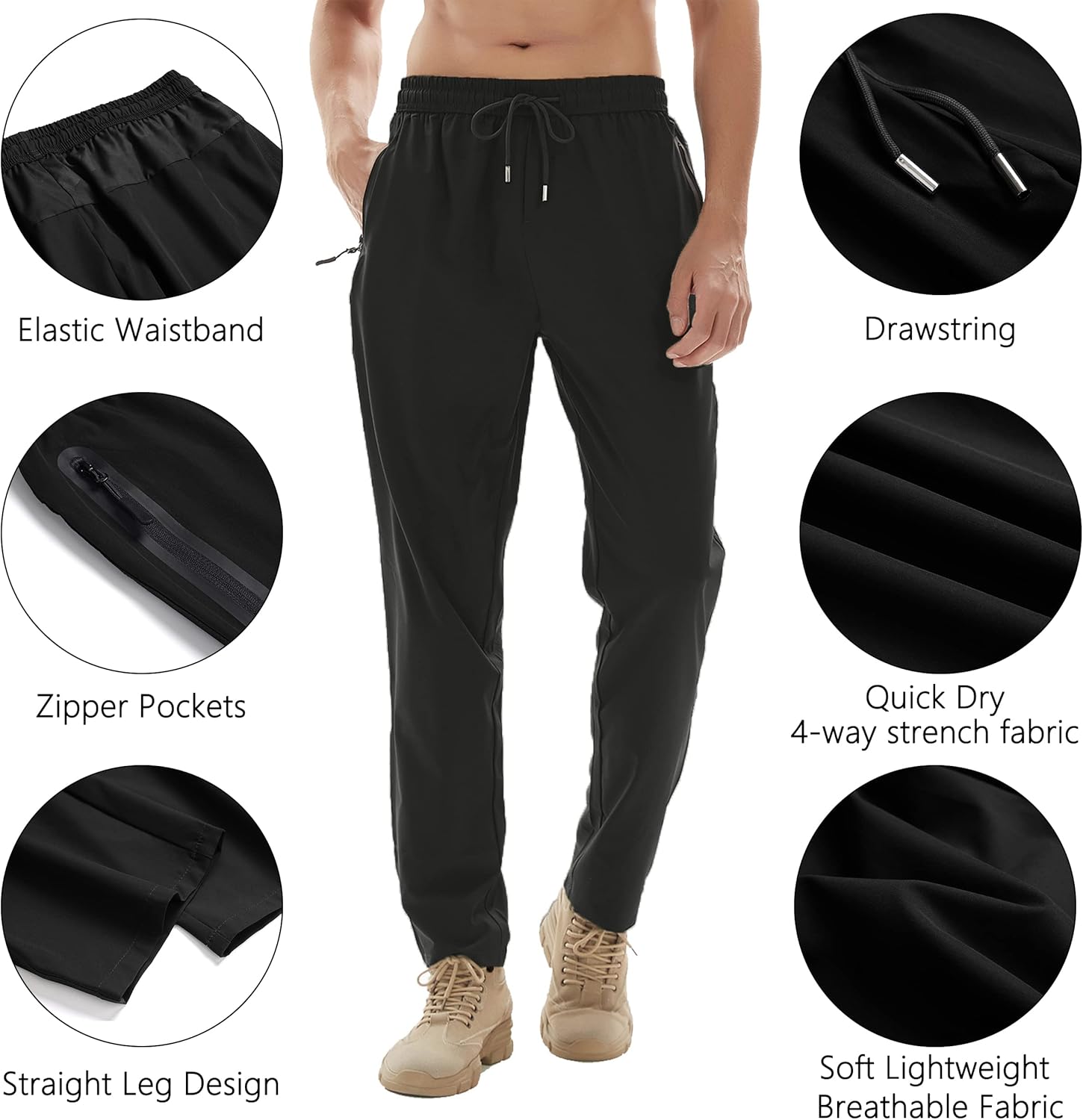 Men's Lightweight Quick Dry Hiking Running Pants Outdoor Sports Breathable Zipper Pockets Athletic Work Pants