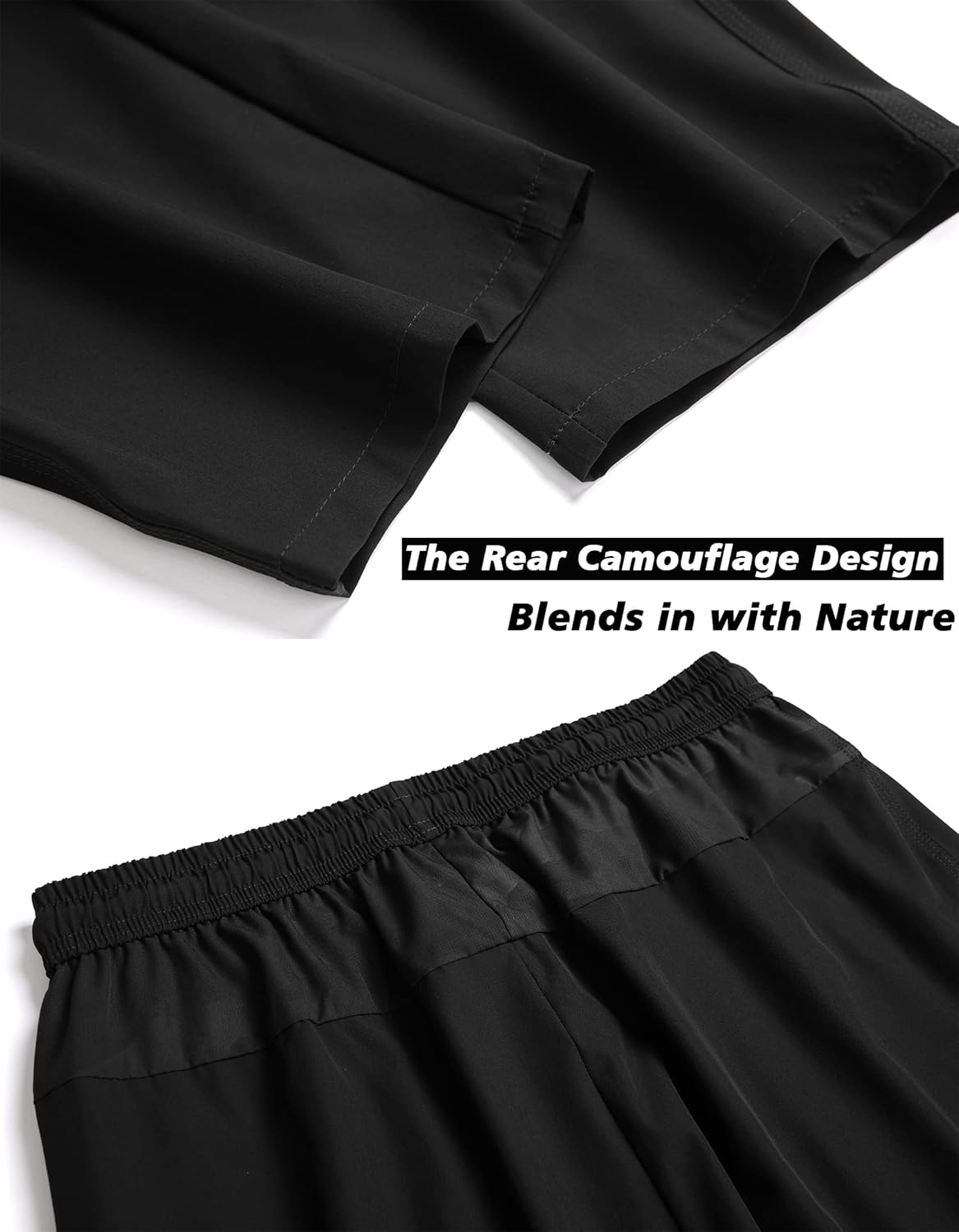 Elastic waistband and drawstring design: Allow you movement more free and comfortable, rear camouflage design blends in with nature
