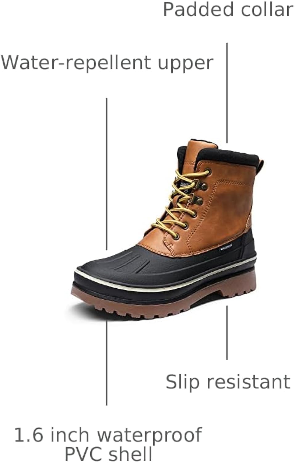 Long-Term Protection: Designed with a 1.6-inch waterproof PVC shell and a water-repellent upper, these mid-calf height winter boots for men keep the snow out and keep feet dry.