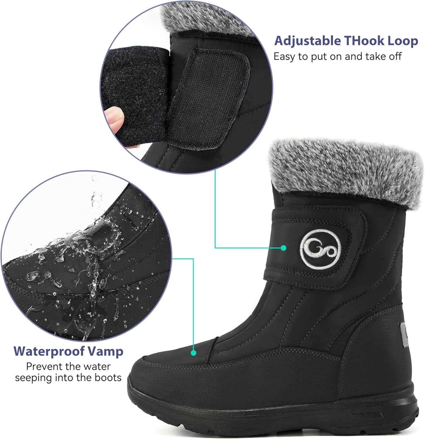 Convenient Closure: These womens snow boots have a hook and loop design, not only stylish, but also easy to put on and take off. It can also adjust the fit of the shoe according to your needs.