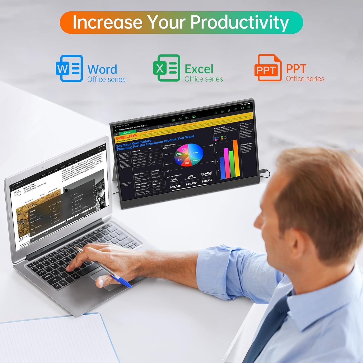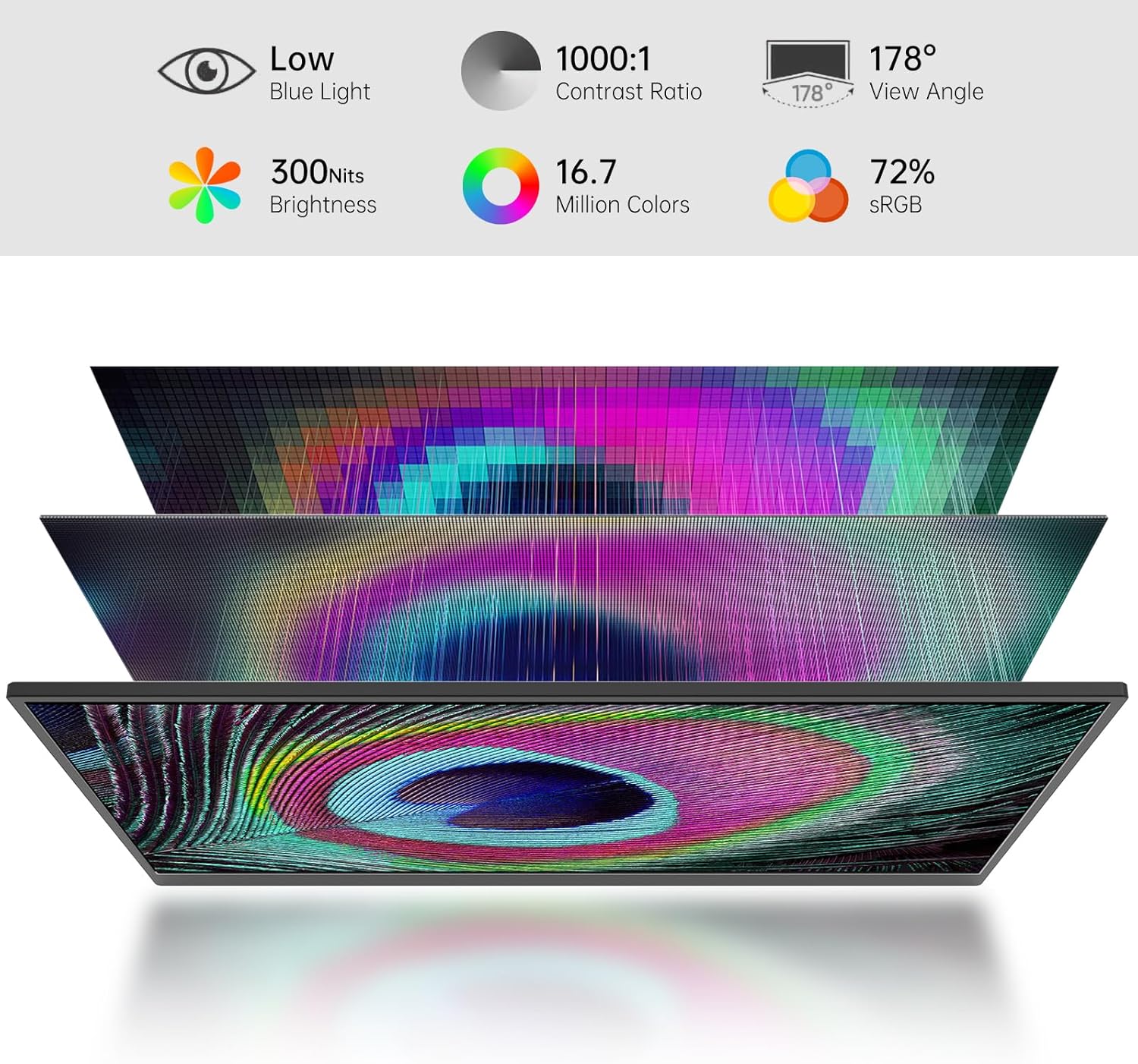 Lightweight Ultra Slim for Travel - As a portable external monitor,MNN portable laptop monitor easily accommodate to every suitcase and backpack and stress-free when you are holding it for a long time. They are truly portable computer monitors for travelers, students, gamers,engineers, and everyone.