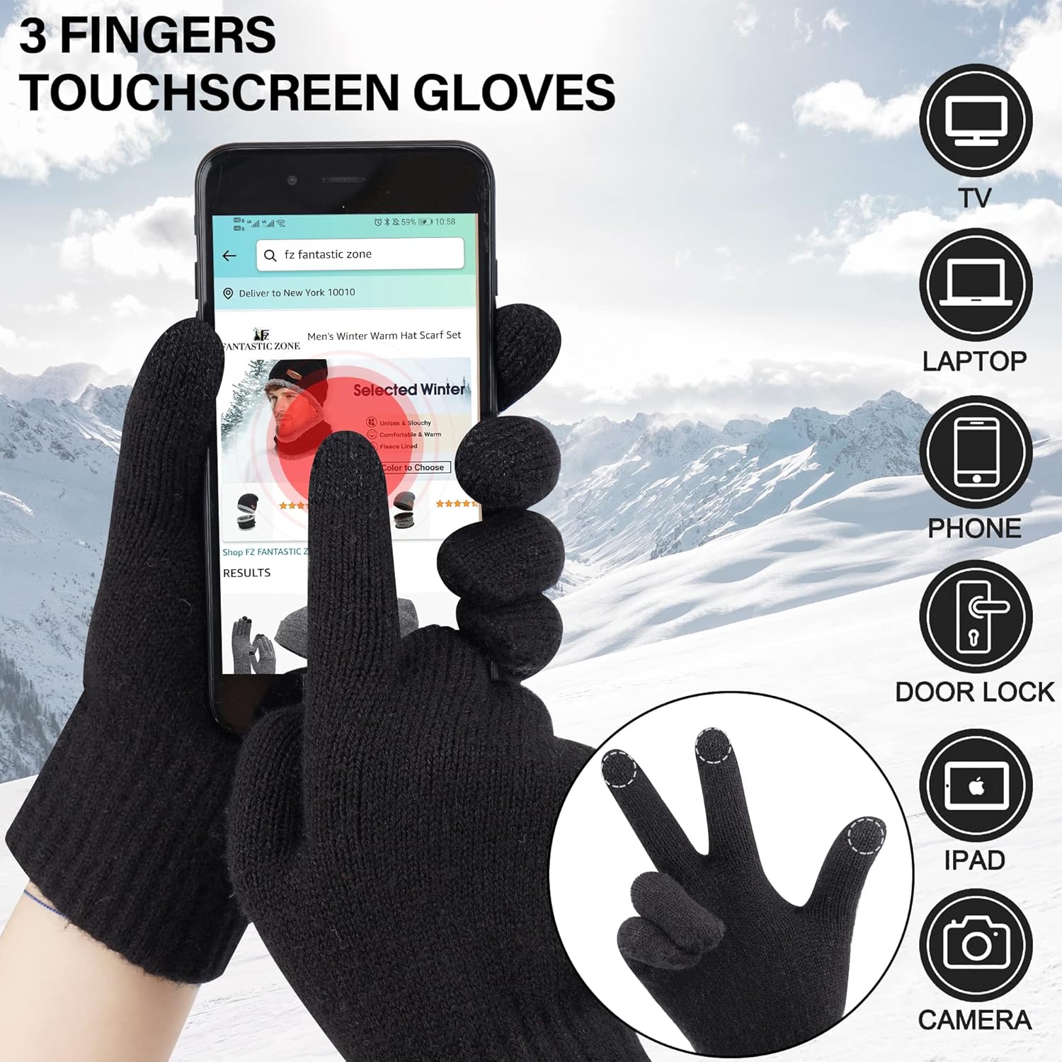 Winter Touch Screen Gloves: Our unique touchscreen gloves feature three-finger touchscreen functionality with a thick elastic cuff design to enjoy using your smartphone, tablet, texting and driving in extremely cold weather while keeping your hands warm. It is the best choice for comfort and safety in winter.