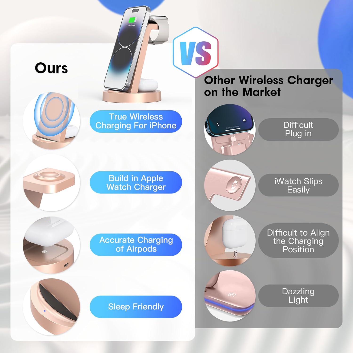 Highly Compatible : Perfect 3 in 1 charging dock for Apple , Compatible with iPhone 16e/16/16 Plus/16Pro/16 Pro max/15/15 Plus/15Pro/15 Pro max/14/14 Plus/14Pro/14 Pro max/13/13Pro/13Pro Max/13 mini/12/12Pro/12Pro Max/12 mini/11/11Pro/11Pro Max/XS/XR/XS MAX/X/8/ 8Plus & Apple iWatch 10/9/8 7/6/5/4/3/2/1/SE & AirPods 2/3/4/Pro1/Pro 2(Note:Airpods Only Support Mag-Safe Charging Case)