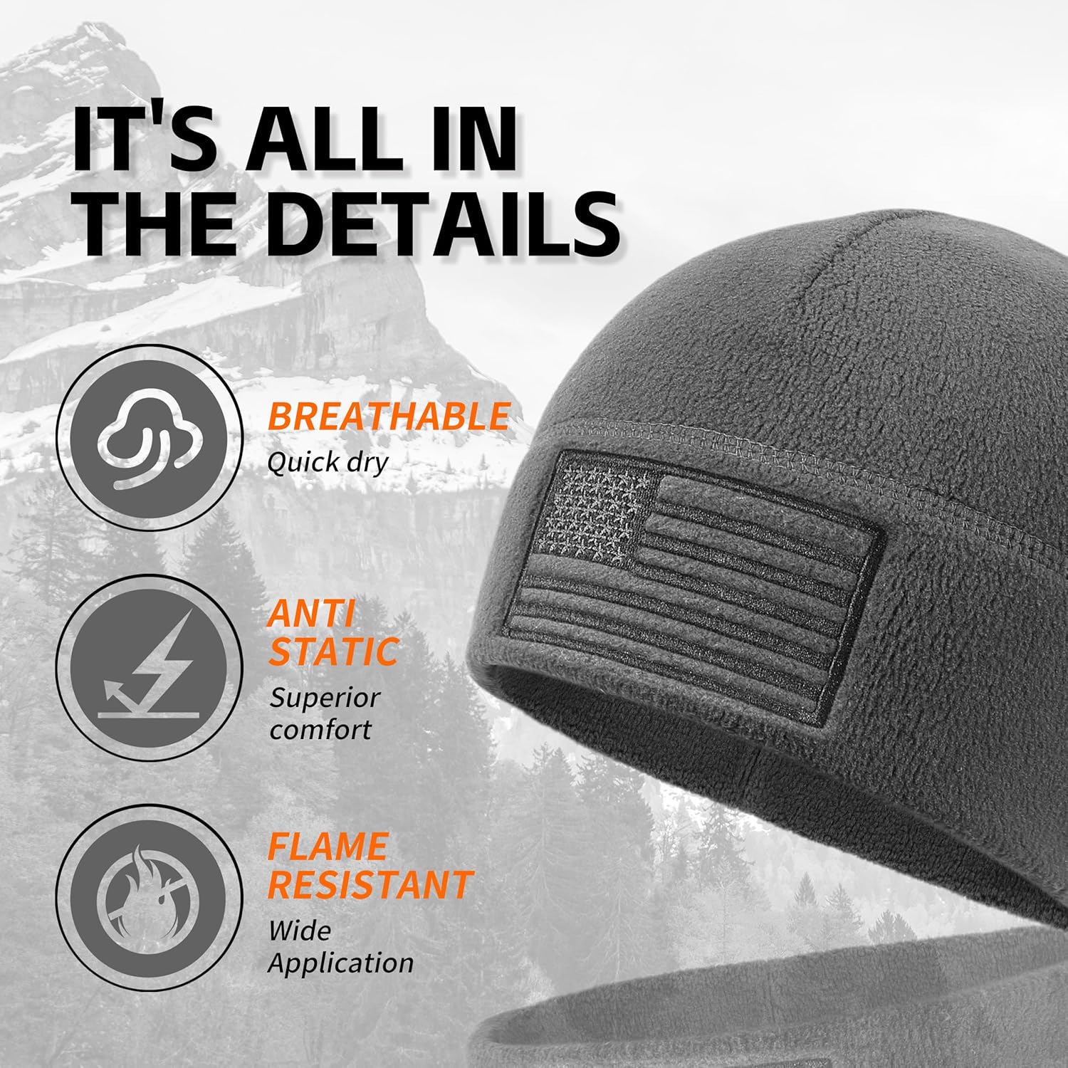 High-Quality Material: Fleece skull cap is made of Recycled Polyester and Conductive Yarn, uses 1 oz/sq.ft [310g/m²] upgraded fabric density. Our skull caps for men, quick dry, anti-static, flame-resistant, extra warmth, thickness but light weight, and superior comfort.